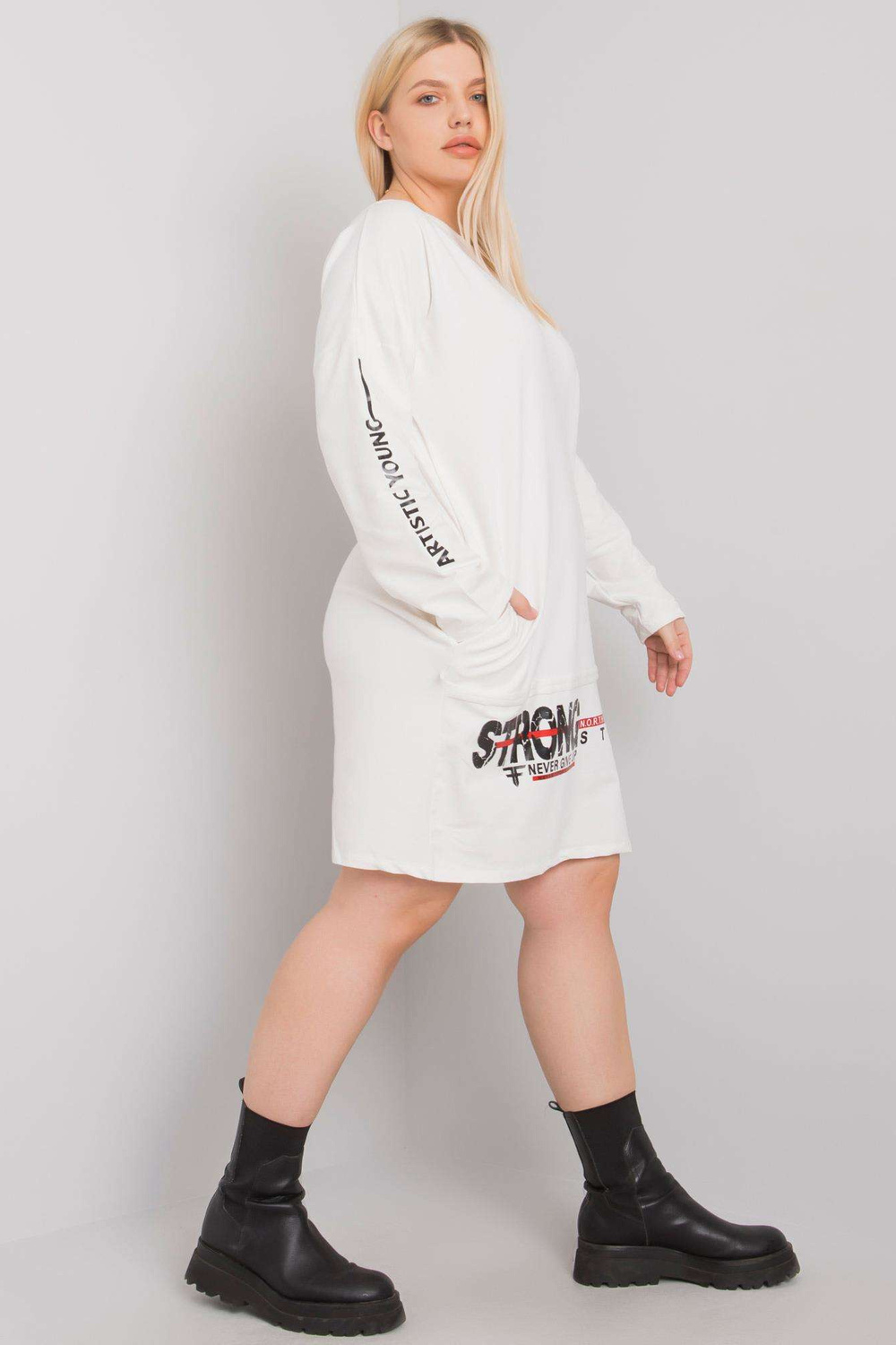 Modelis valkā izmēru viens izmērs. Modeļa izmēri: augums 172 cm, krūtis 102 cm, viduklis 77 cm, gurni 118 cm.