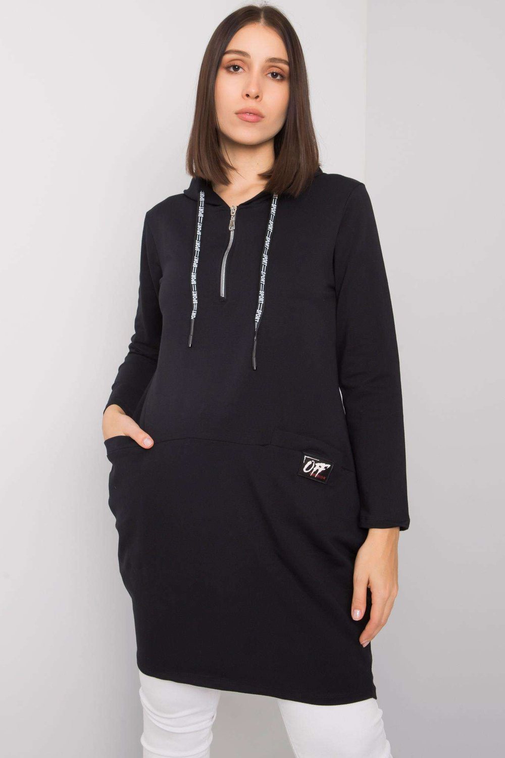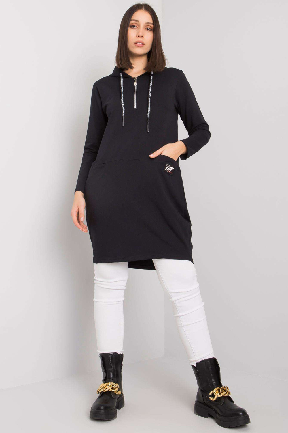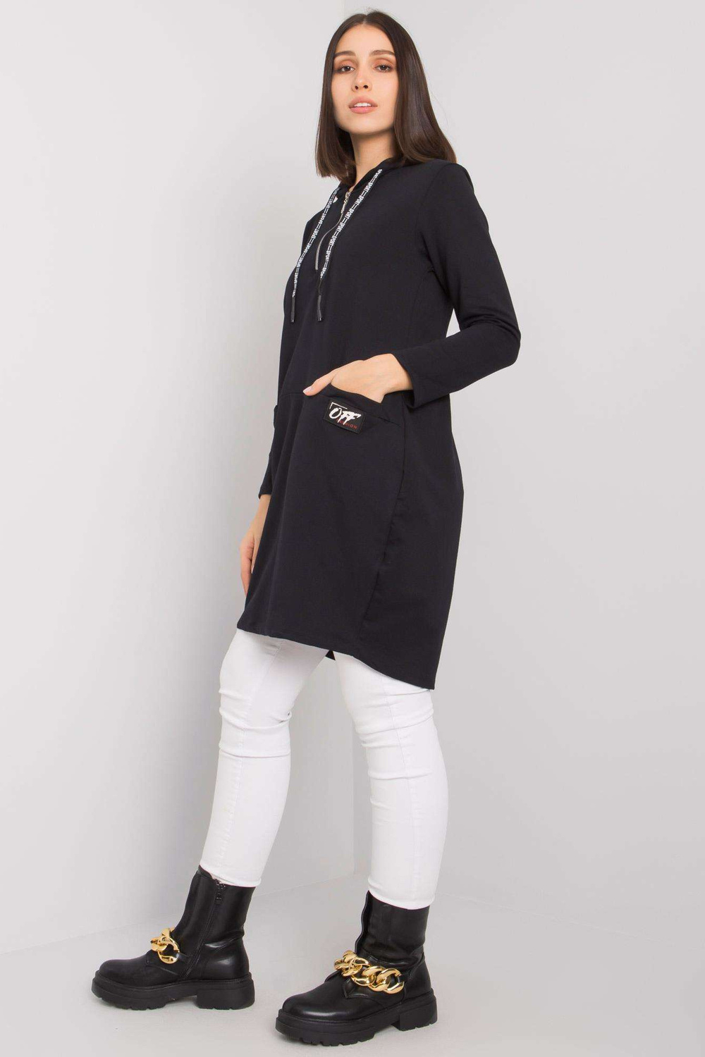 Melnas kokvilnas lielizmēra tunika ar Kierra kapuci.