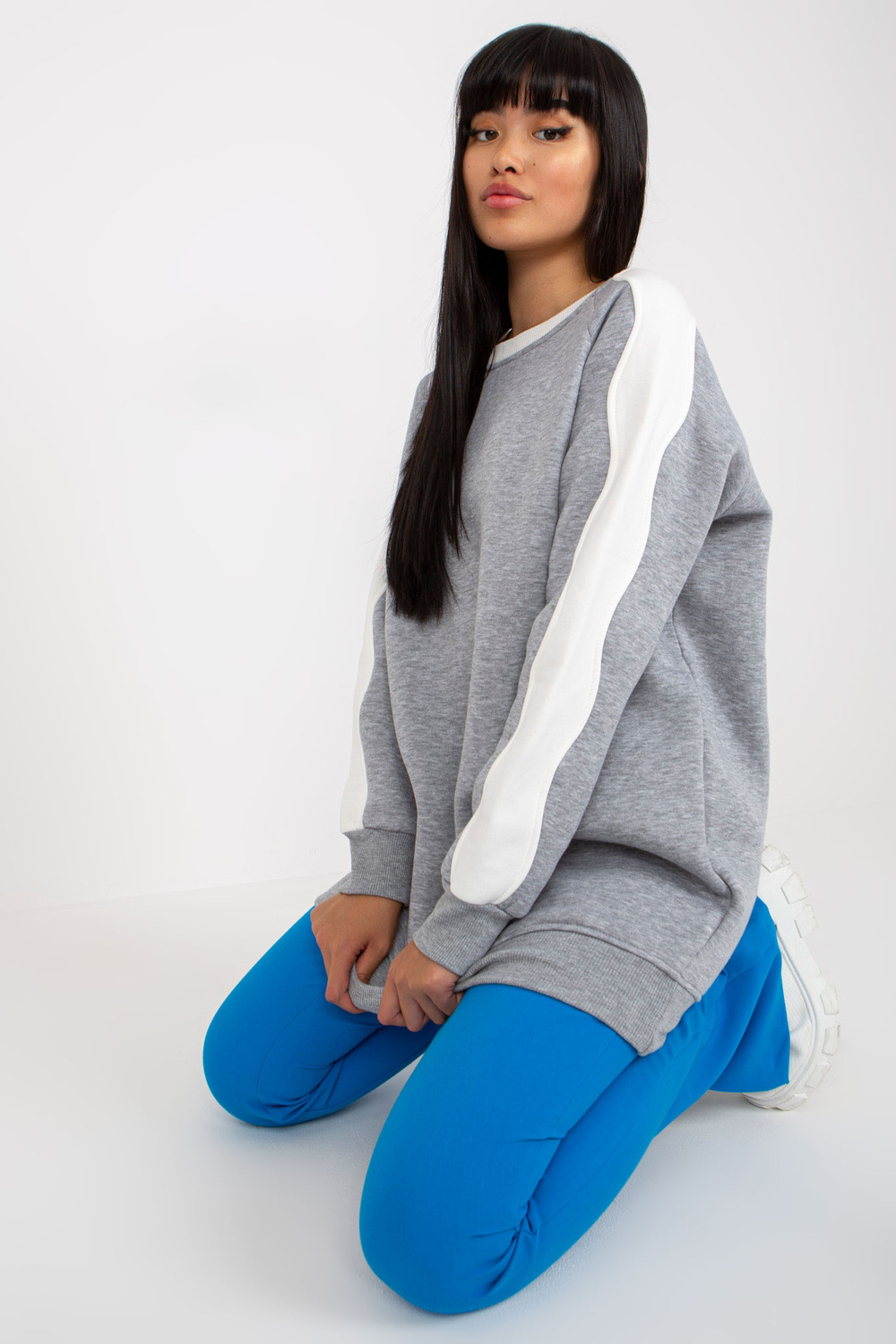 Pelēka un balta sporta krekla tunika ar garām piedurknēm RUE PARIS