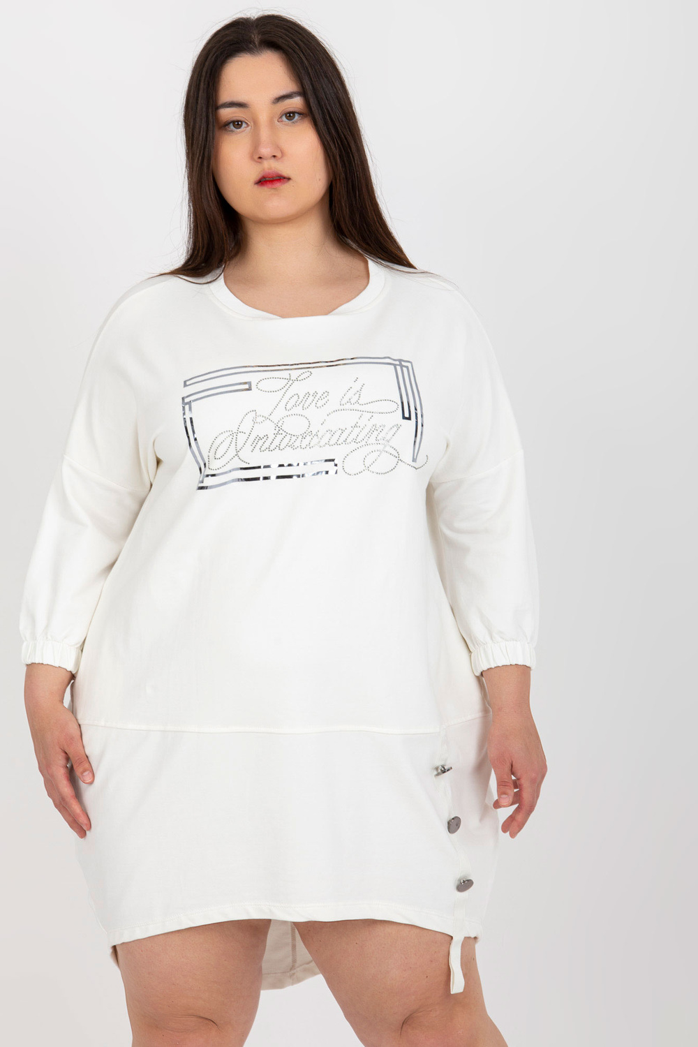Kleitas izmēri viena izmēra izmērā, mērot plakanu: platums zem rokām - 68 cm, piedurknes garums - 45 cm, kopējais garums (priekšpusē) - 83 cm, kopējais garums (aizmugurē) - 94 cm.