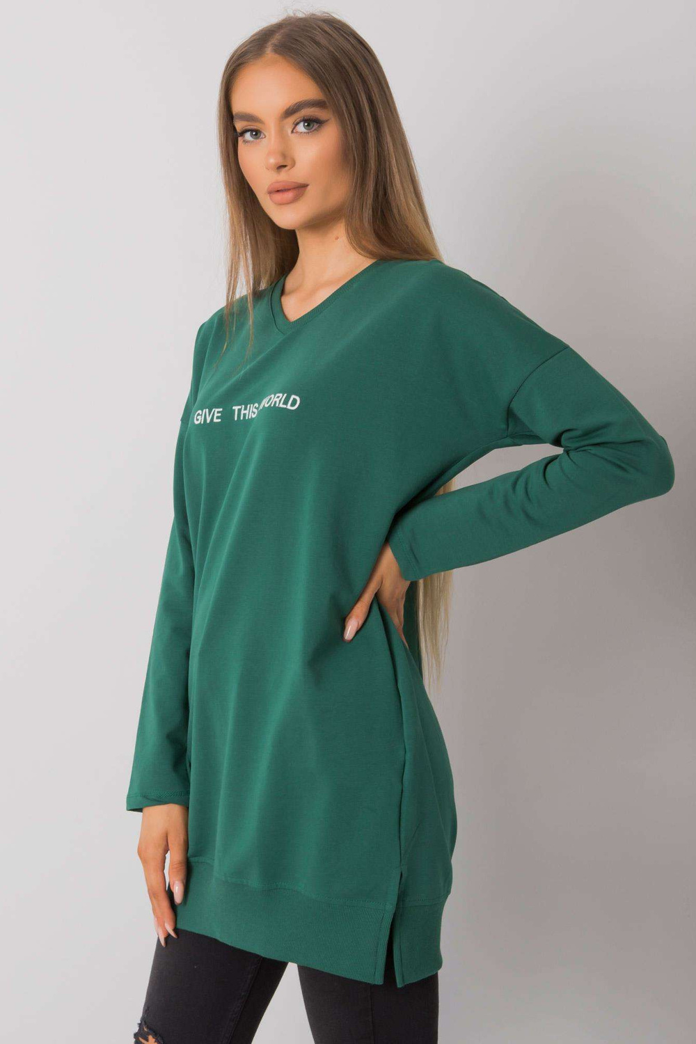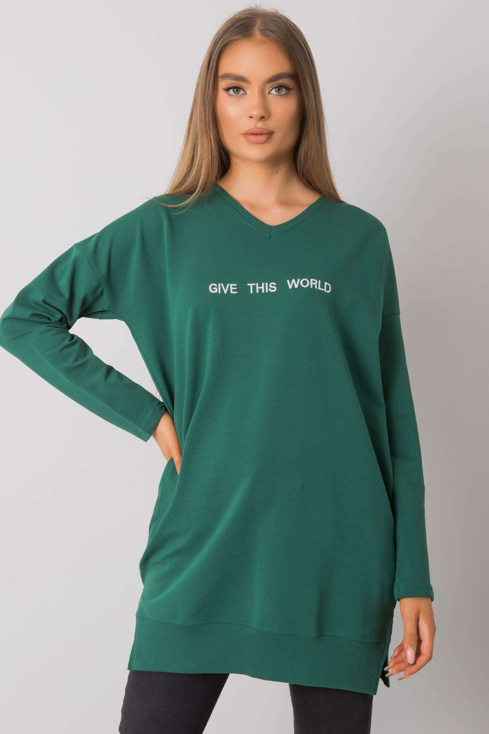 Tumši zaļa tunika ar uzrakstu Halifax RUE PARIS.