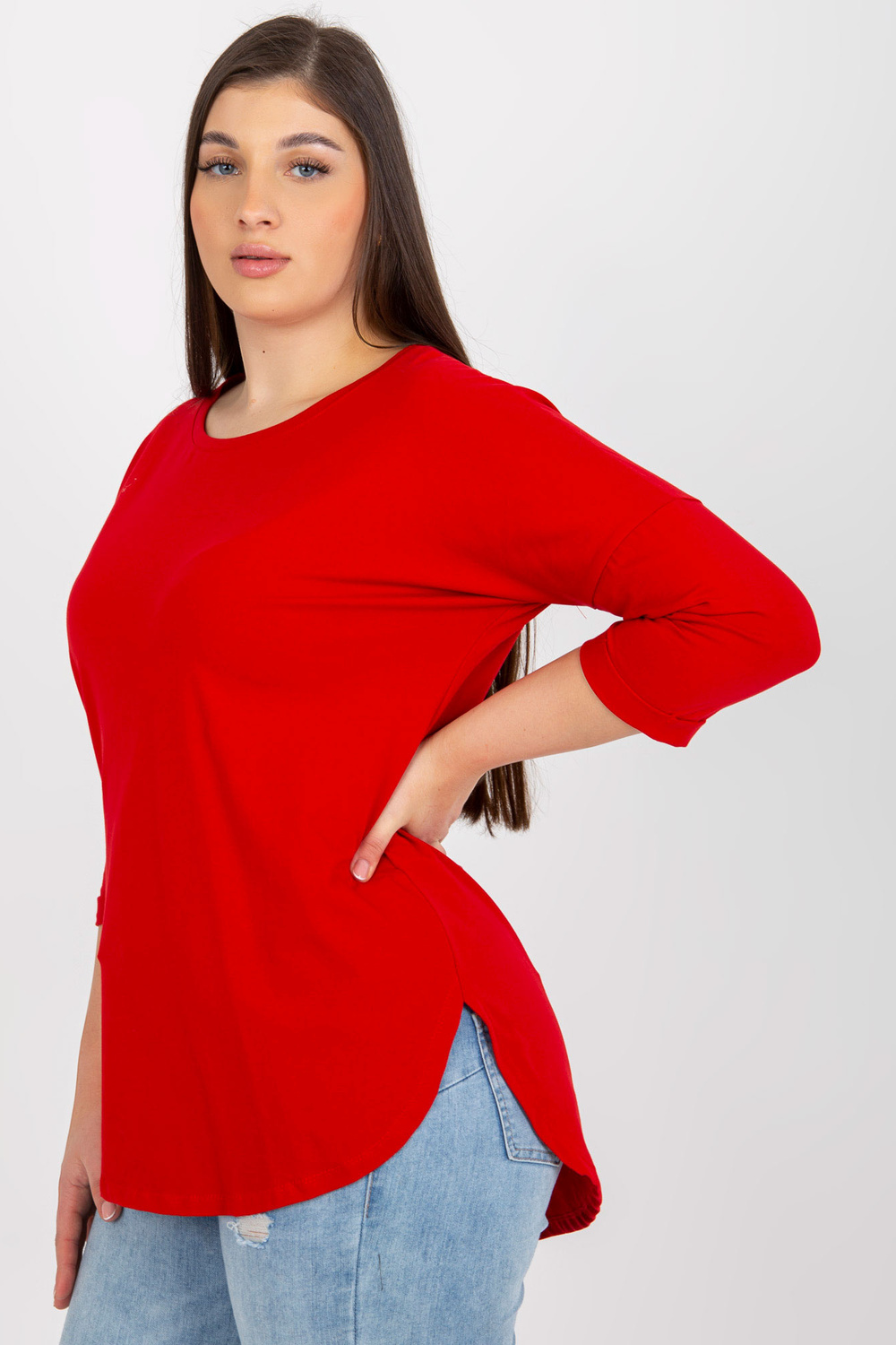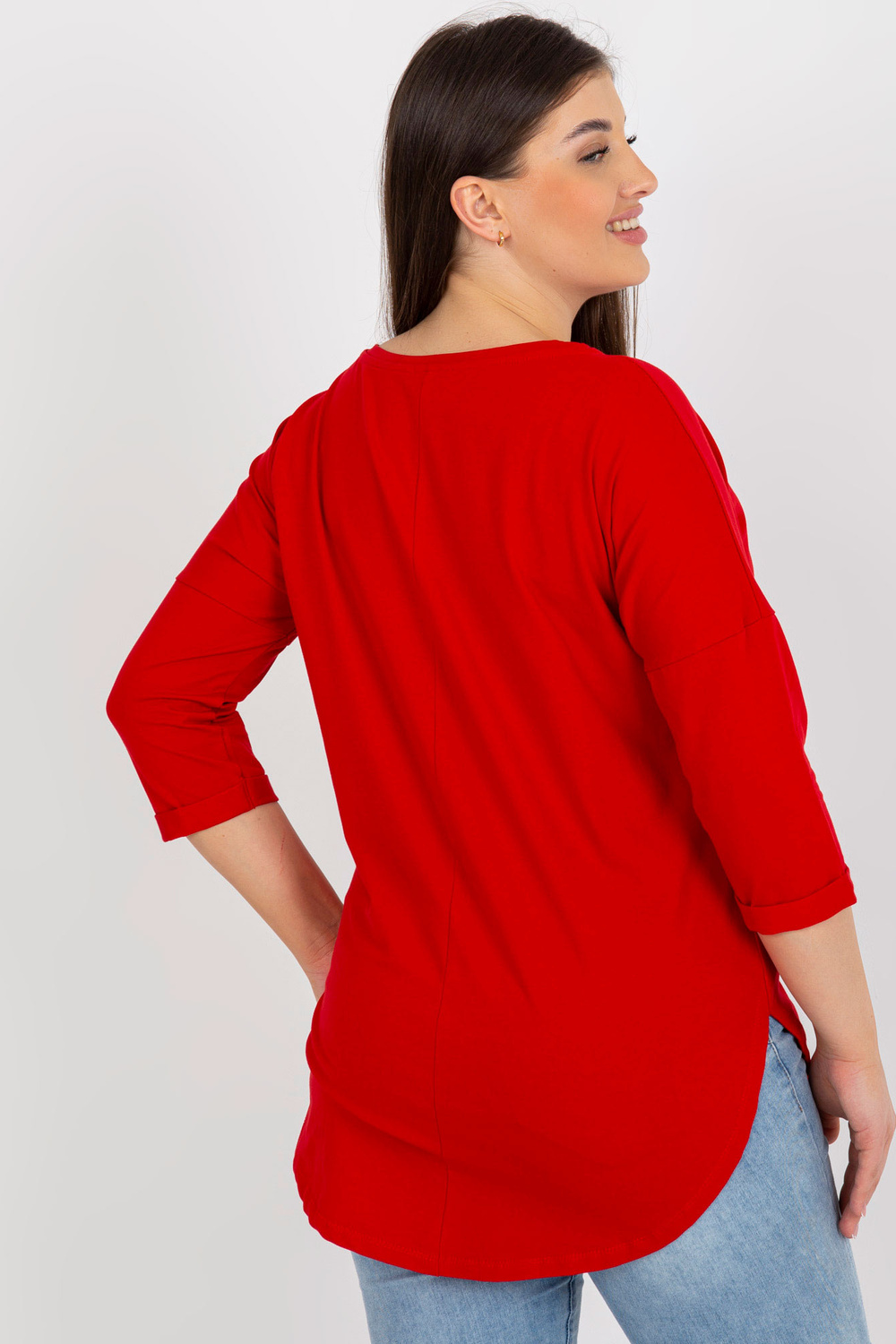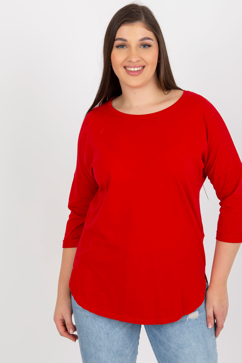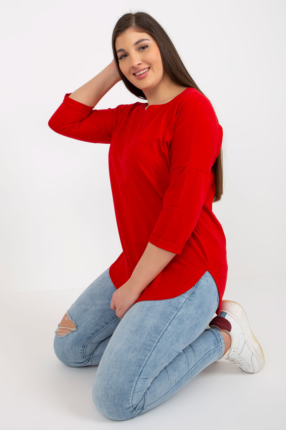 Sarkana liela izmēra kokvilnas blūze ar 3/4 piedurknēm.
