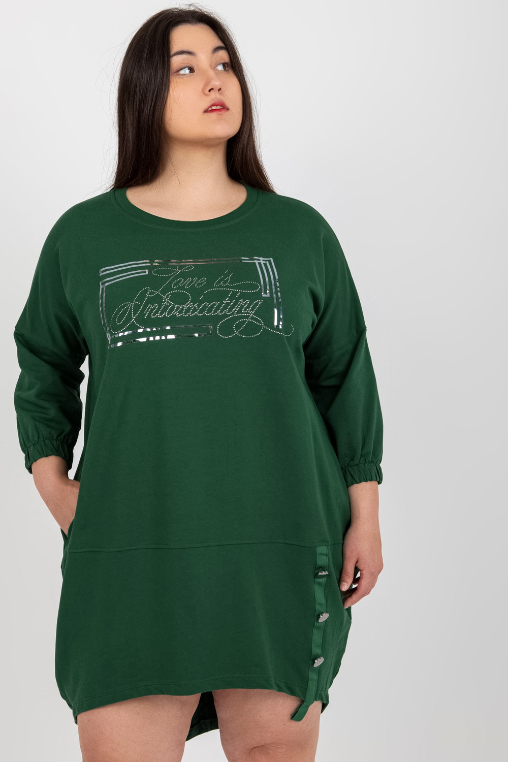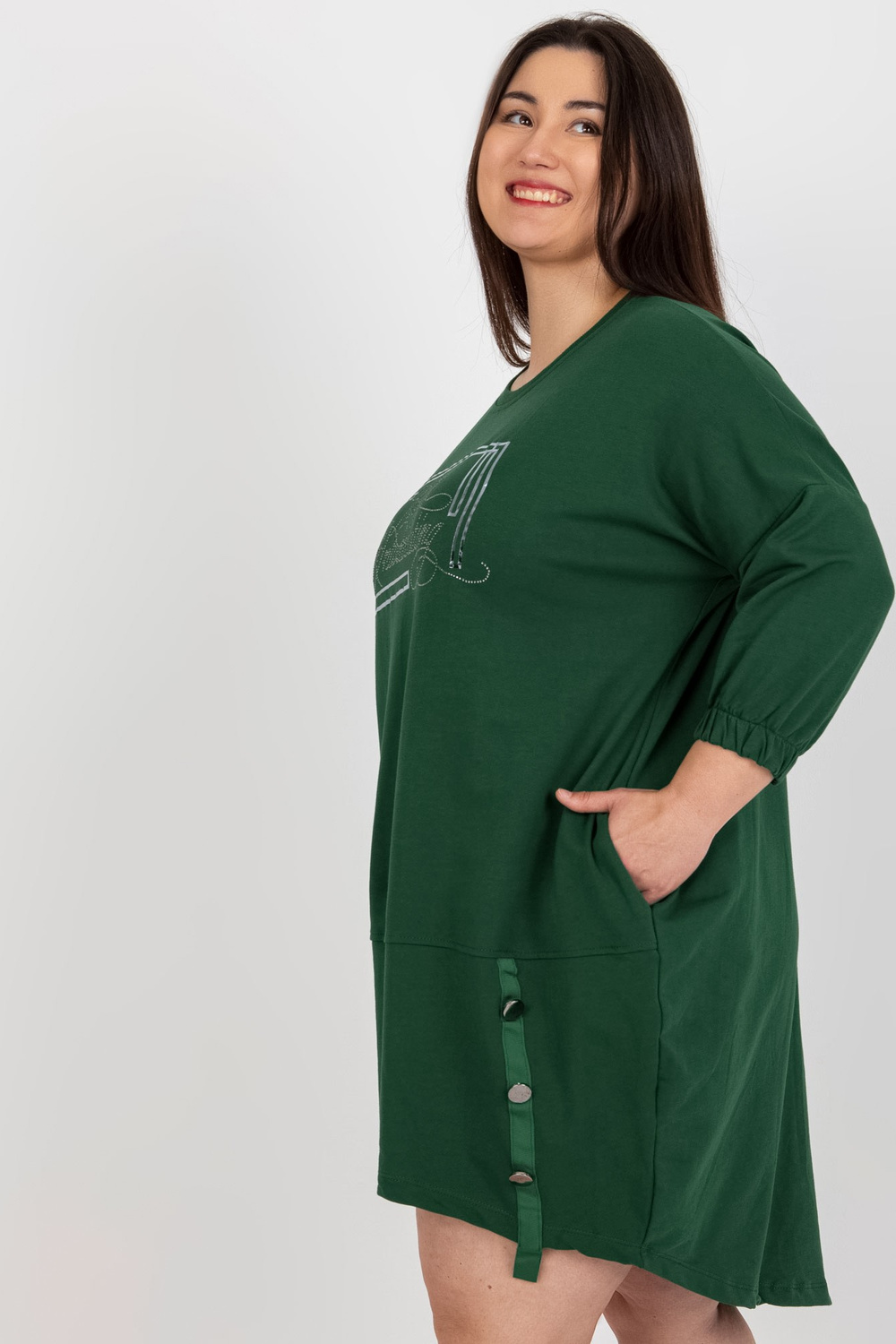 Kleitas izmēri viena izmēra izmērā, mērot plakanu: platums zem rokām - 68 cm, piedurknes garums - 45 cm, kopējais garums (priekšpusē) - 83 cm, kopējais garums (aizmugurē) - 94 cm.
