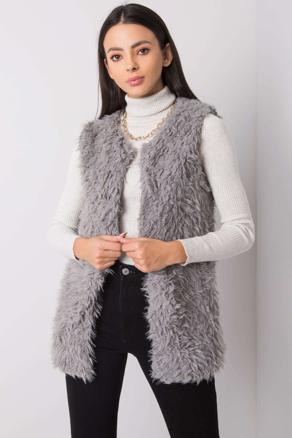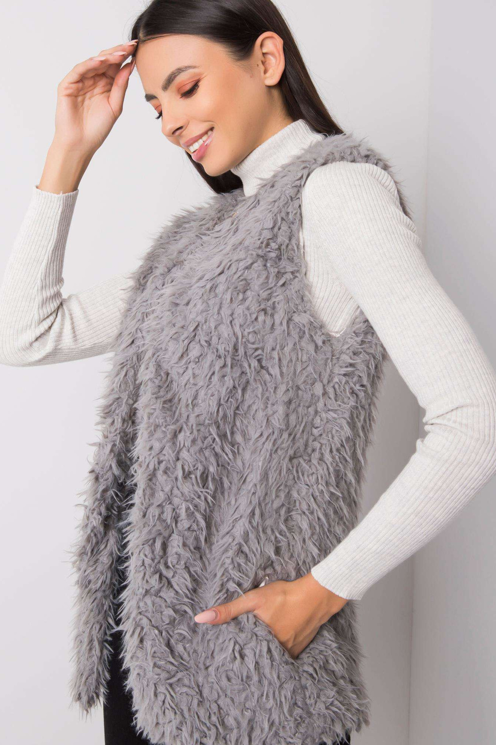 Tumši pelēka Sybille kažokādas veste .