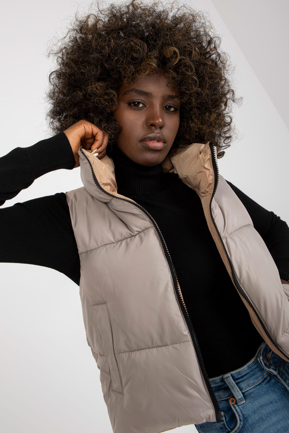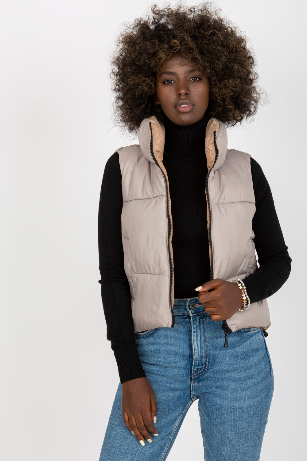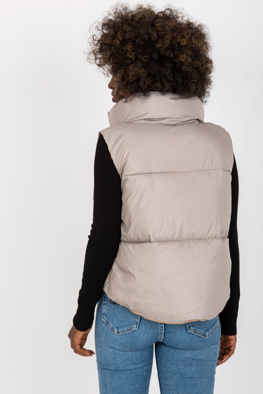 Gaiši pelēka divpusēja dūnu veste ar vatējumu.