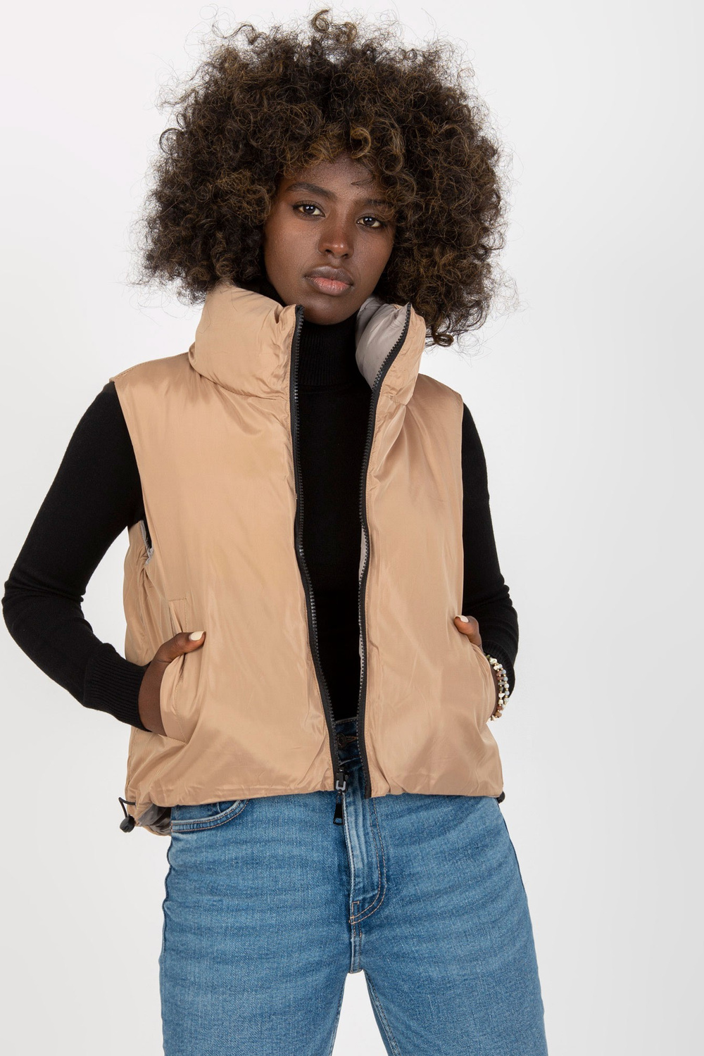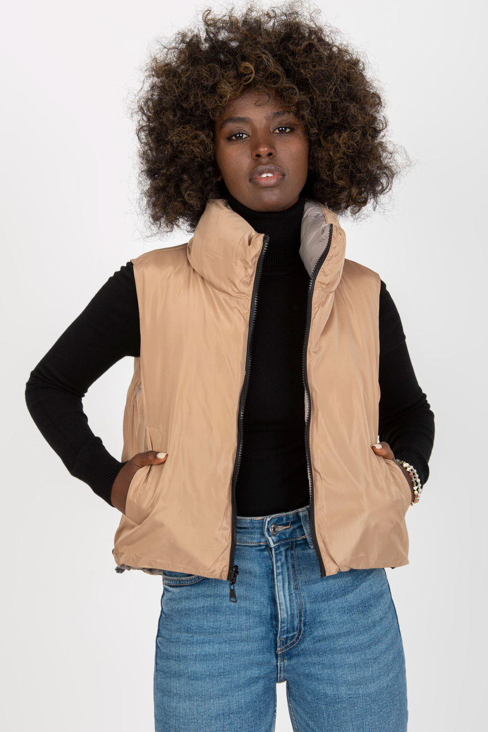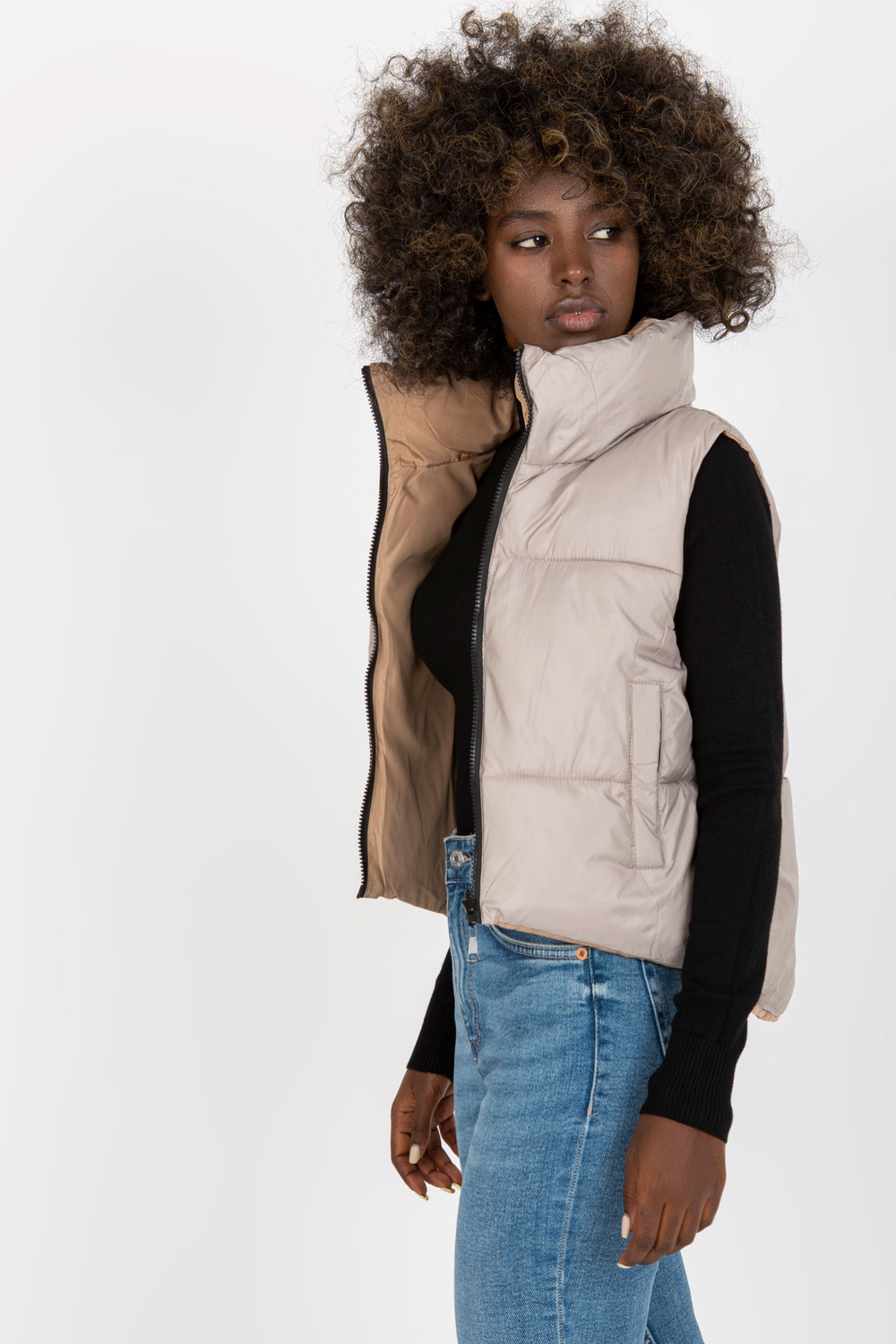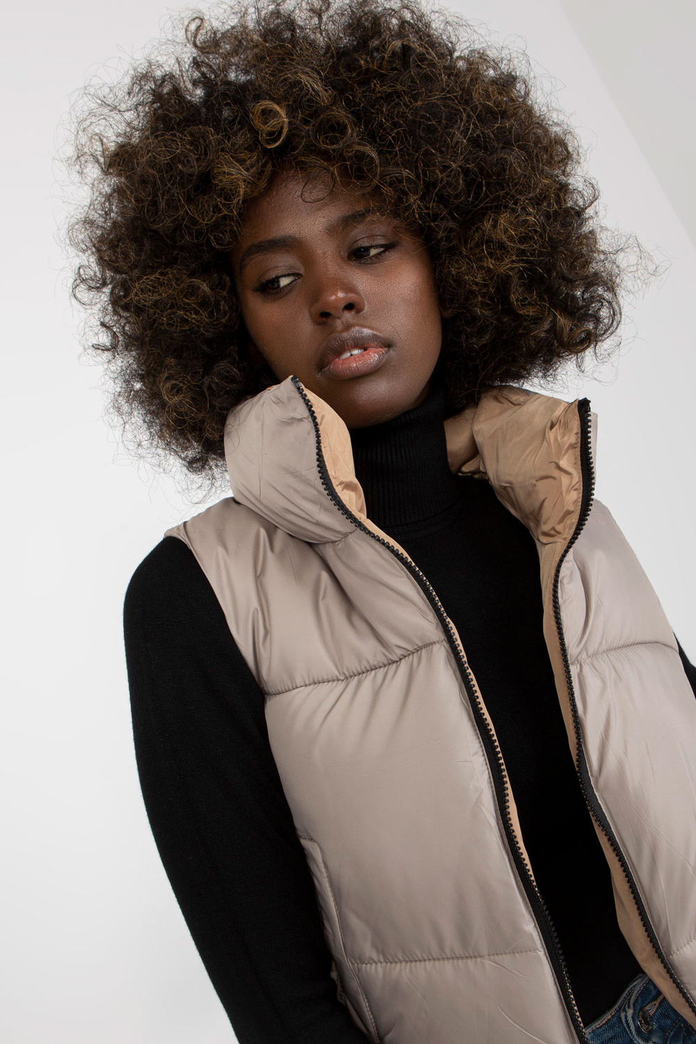Gaiši pelēka divpusēja dūnu veste ar vatējumu.