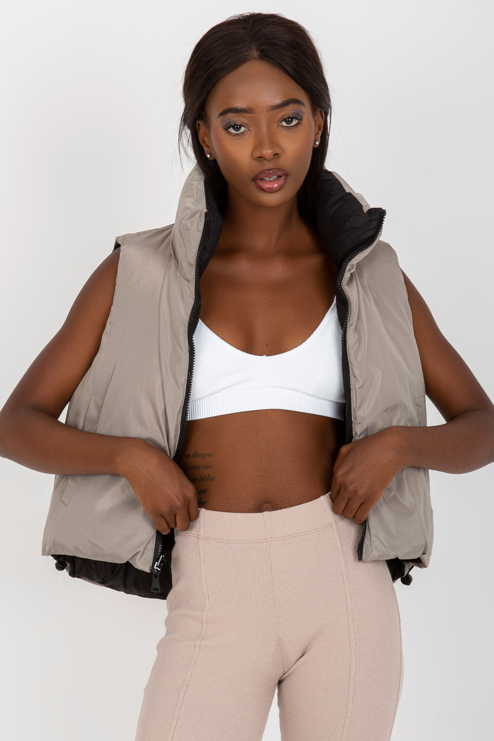 Vestes izmēri S izmēram mērot plakanā stāvoklī: platums zem padusēm - 45 cm, kopējais garums (priekšpusē) - 48 cm, kopējais garums (aizmugurē) - 56 cm.