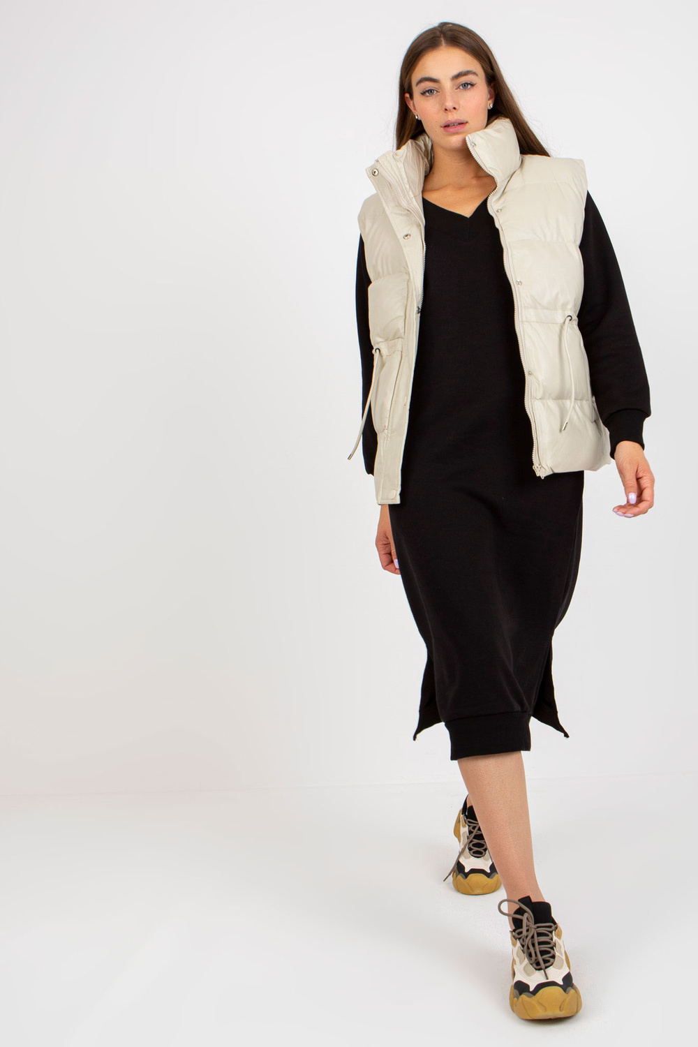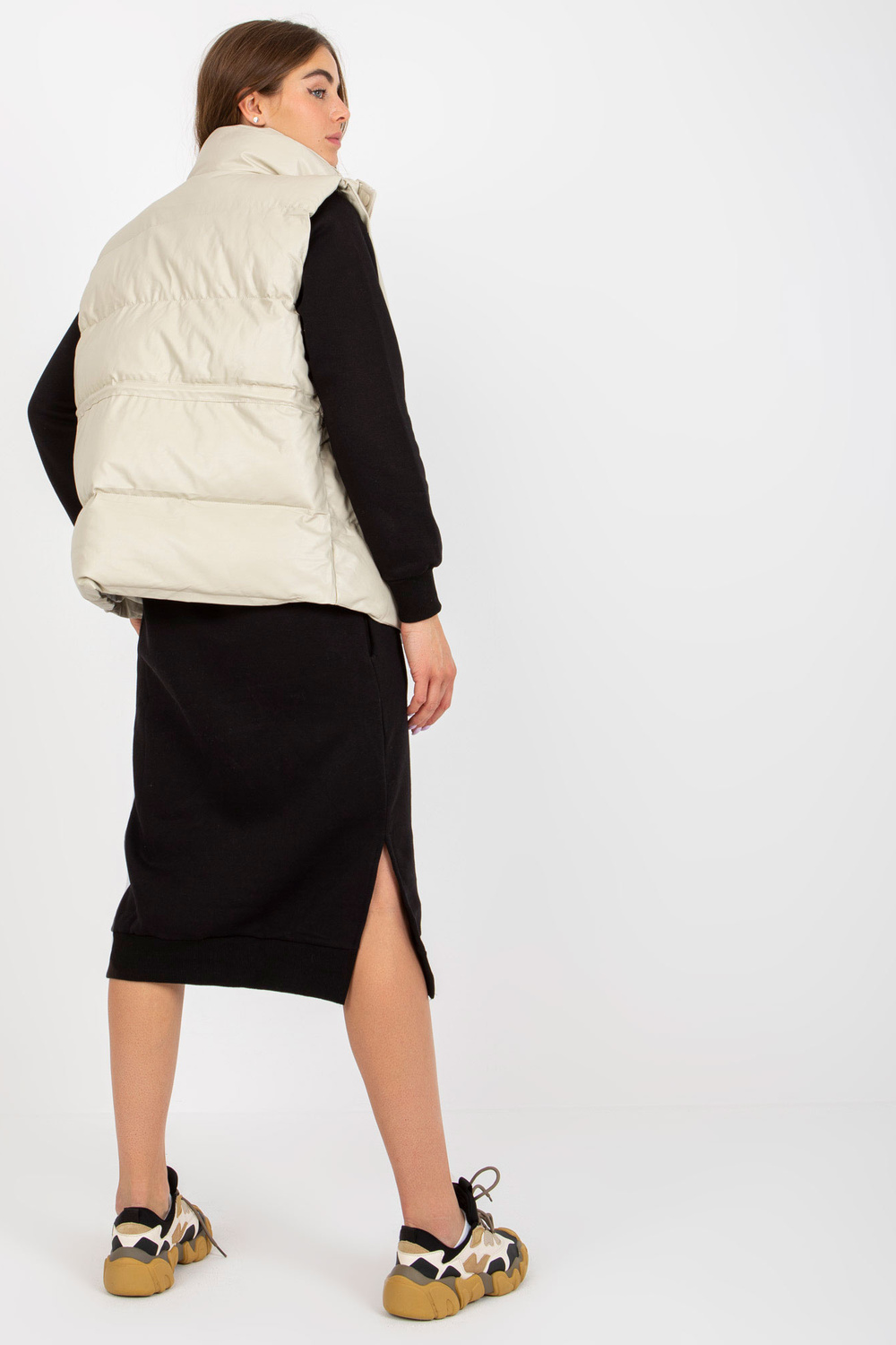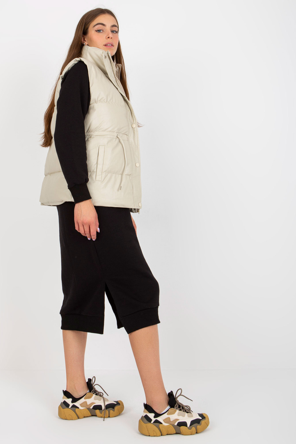 Gaiši bēša dūnu veste no eko ādas ar vatējumu.