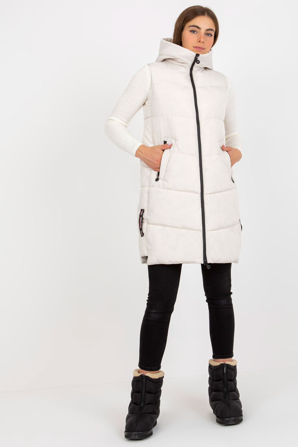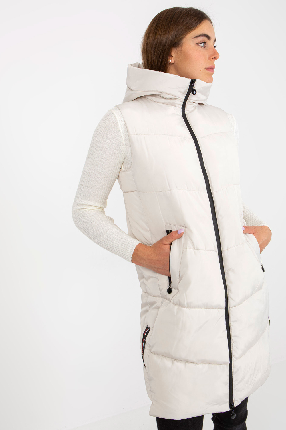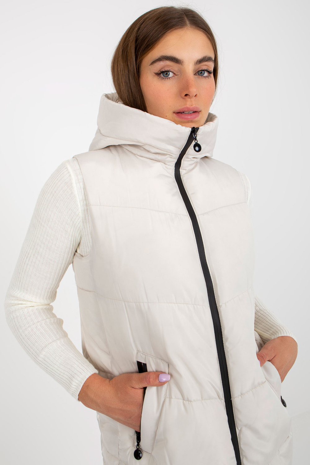 Krēmkrāsas gara dūnu veste ar kabatām.