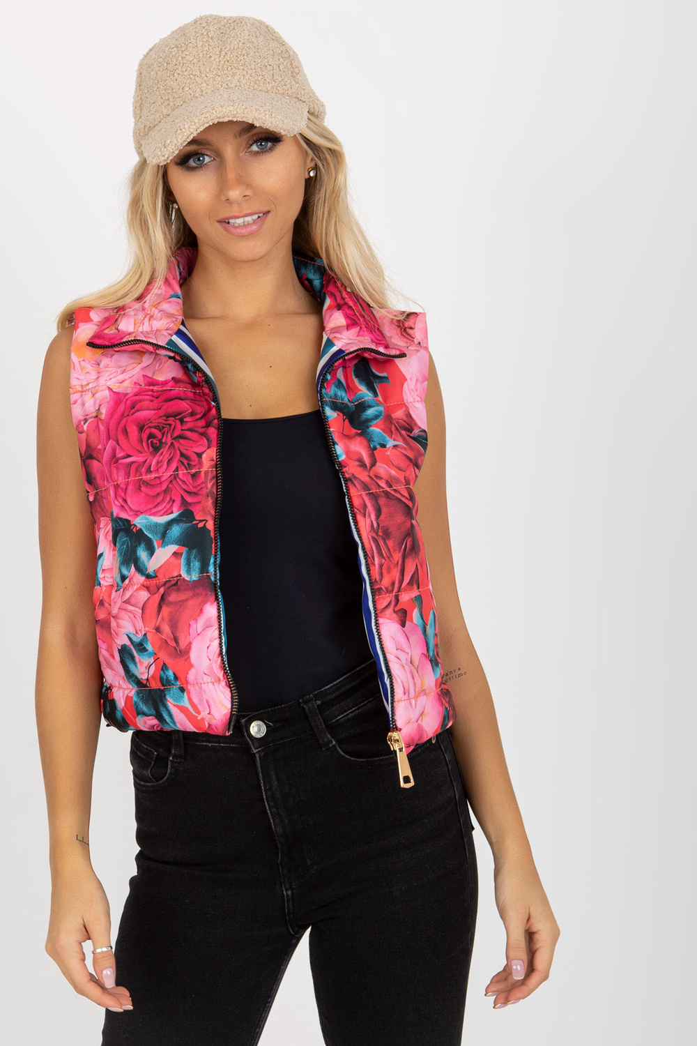 Kura Weste in Rosa mit Blumen und Paspeln.
