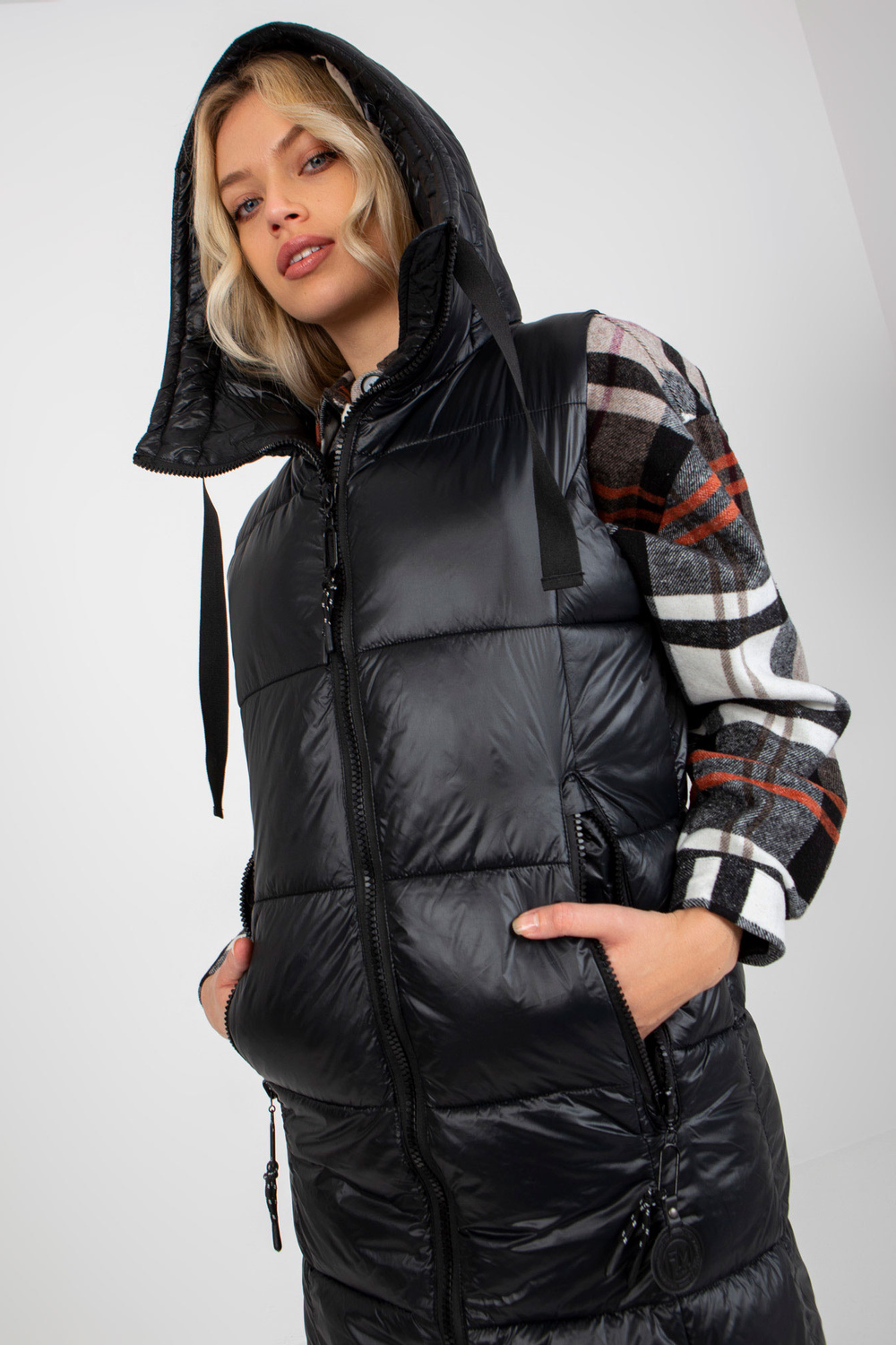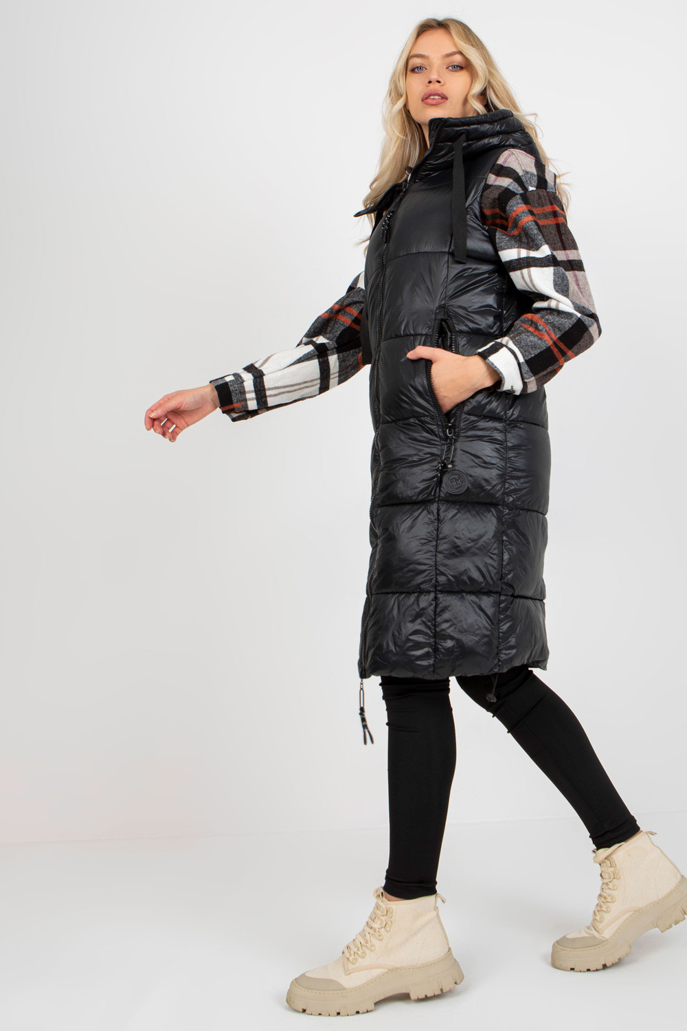 Vestes izmēri S izmēram, mērot plakanu: platums zem rokām - 53 cm, kopējais garums - 98 cm.