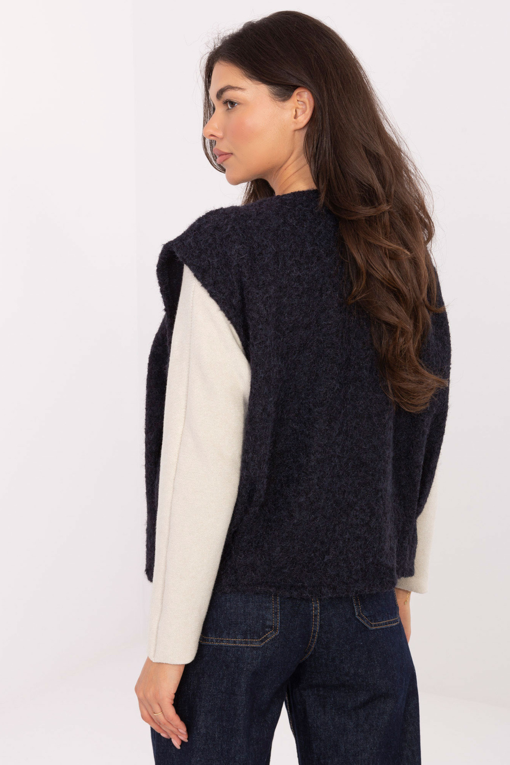 Modelis valkā vienu izmēru apģērbu. Modeļa izmēri: augums 173 cm, krūtis 85 cm, viduklis 62 cm, gurni 95 cm.