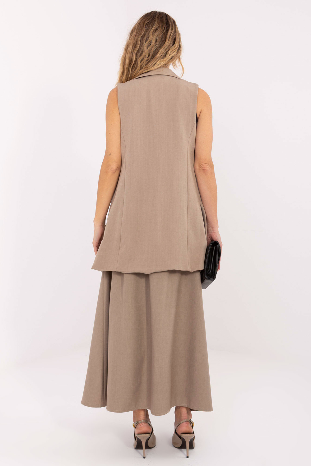 S izmēra vestes izmēri mērīti izgludināti: platums zem padusēm - 46 cm, vidukļa platums - 45 cm, gurnu platums - 57 cm, kopējais garums - 83 cm.