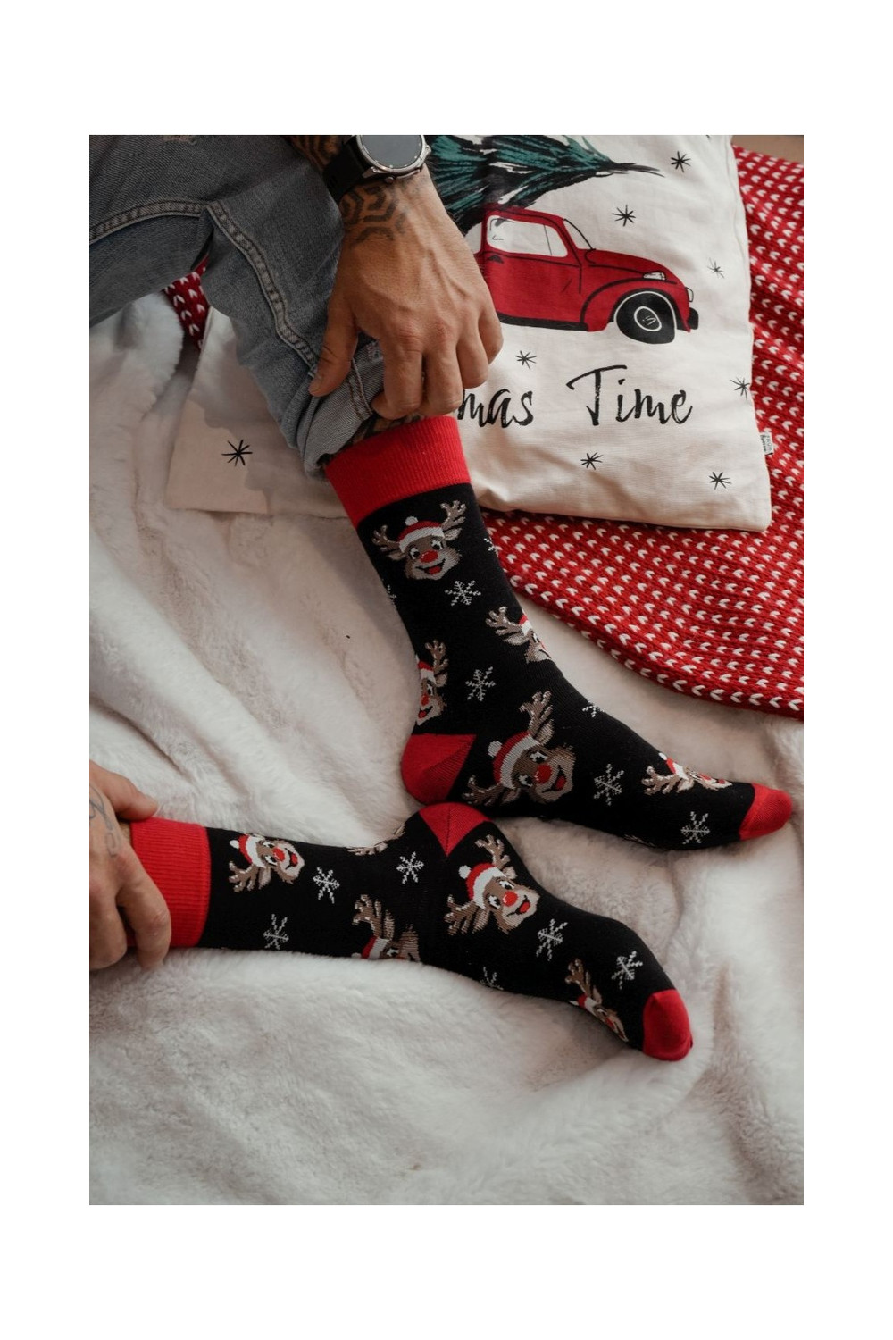Vīriešu zeķes Christmas Uśmiechnięte Reindeers melnas krāsas