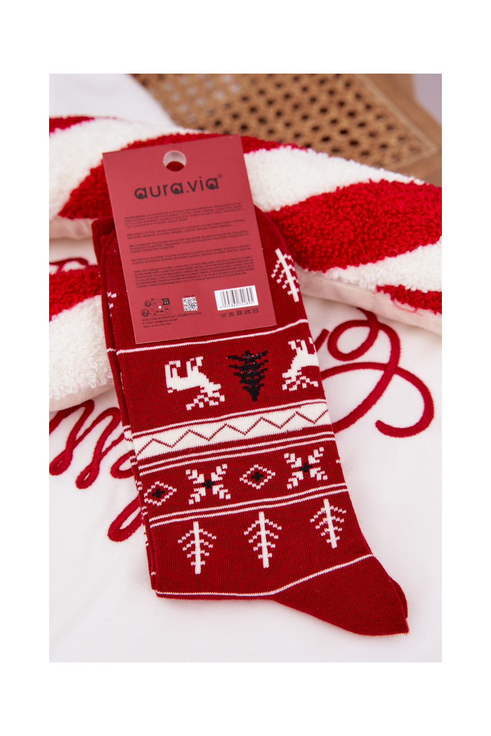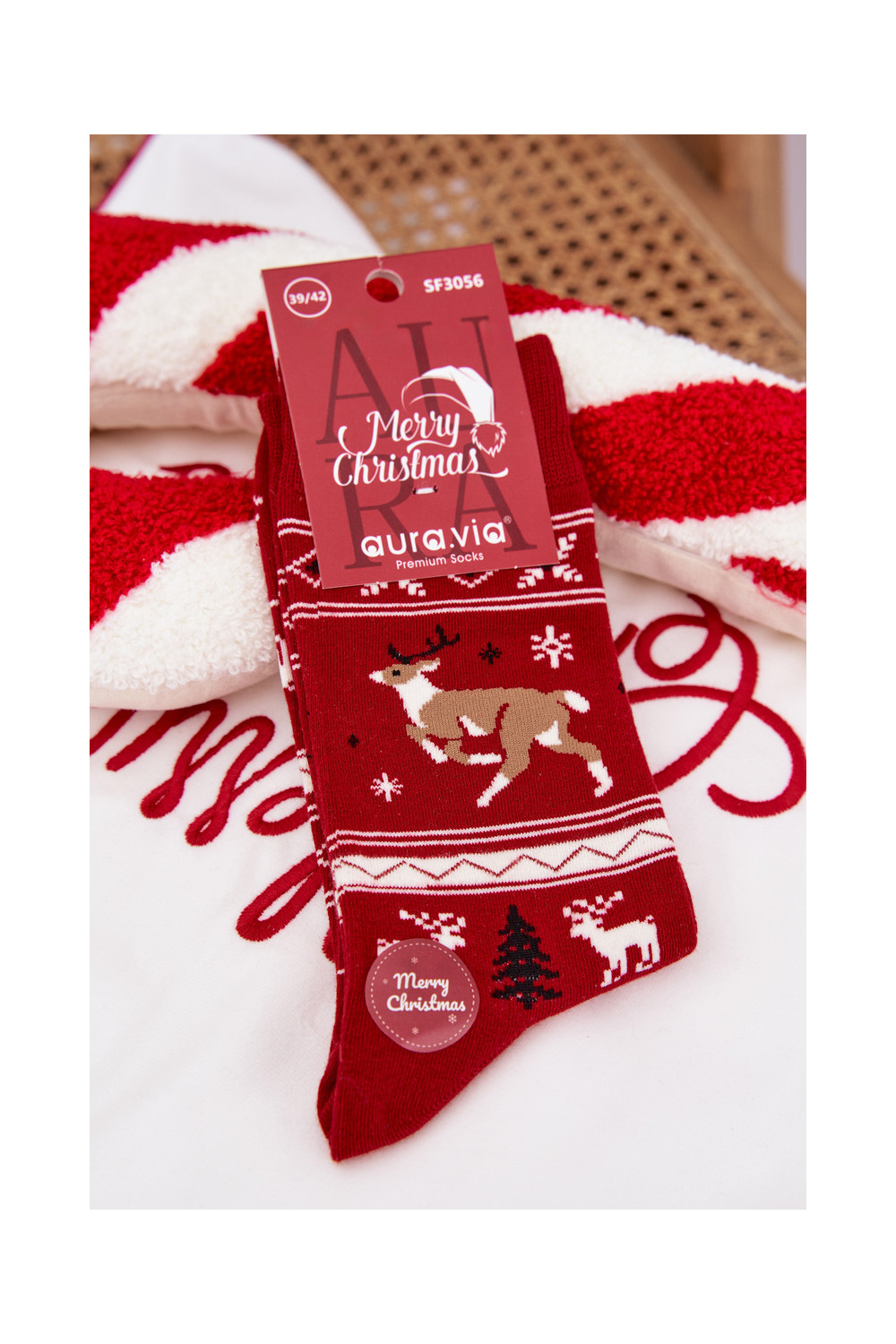 Vīriešu Ziemassvētku zeķes ar skrienošiem ziemeļbriežiem sarkanā krāsā