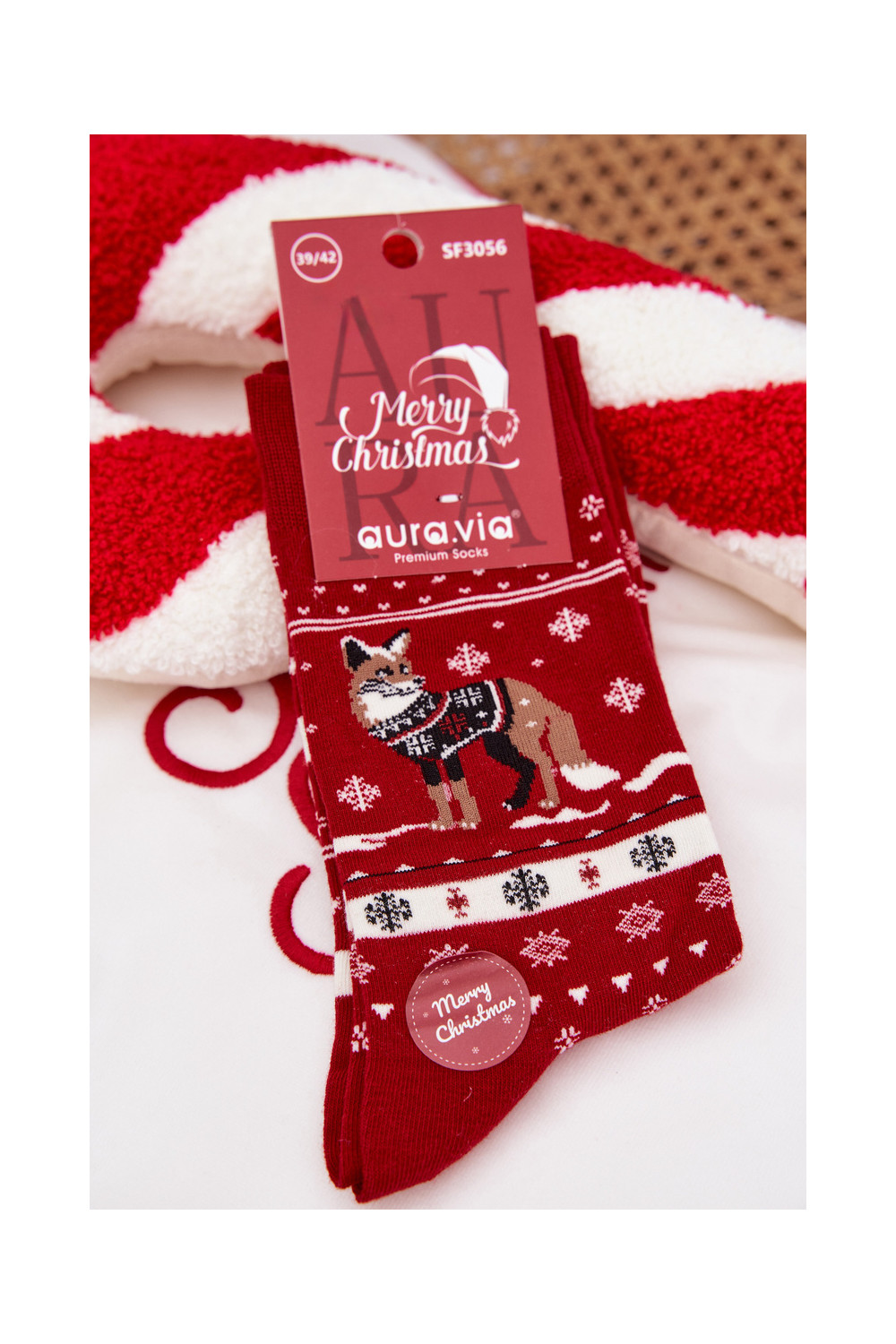 Vīriešu Ziemassvētku zeķes ar lapsu džemperī sarkanā krāsā