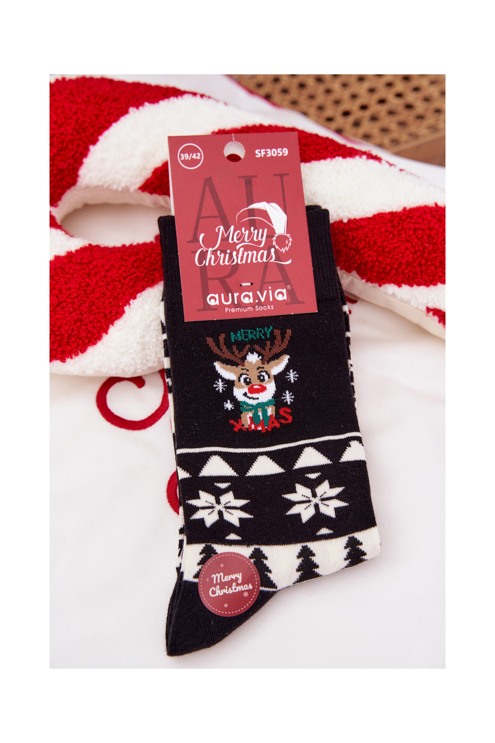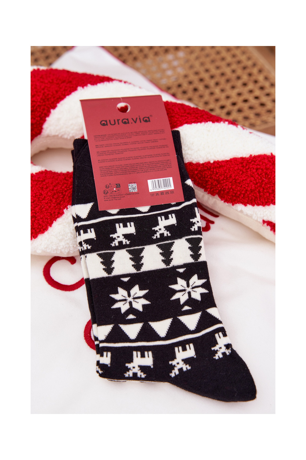 Vīriešu Ziemassvētku zeķes ar rakstu un alņiem melnā krāsā