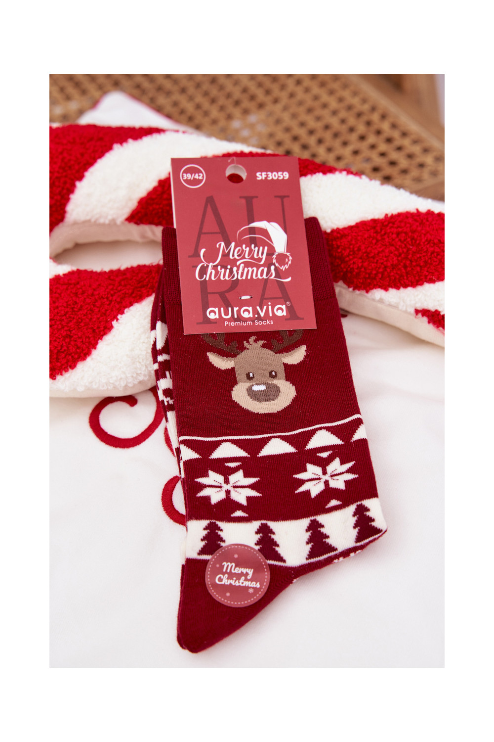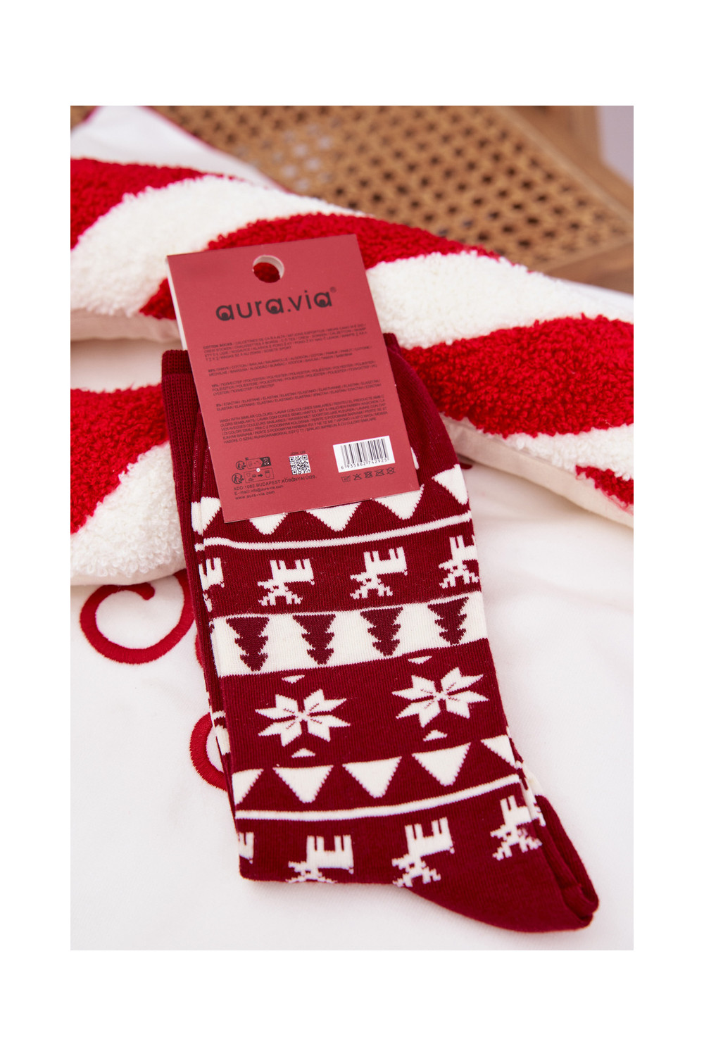 Vīriešu Ziemassvētku zeķes ar rakstu un alņiem bordo krāsā