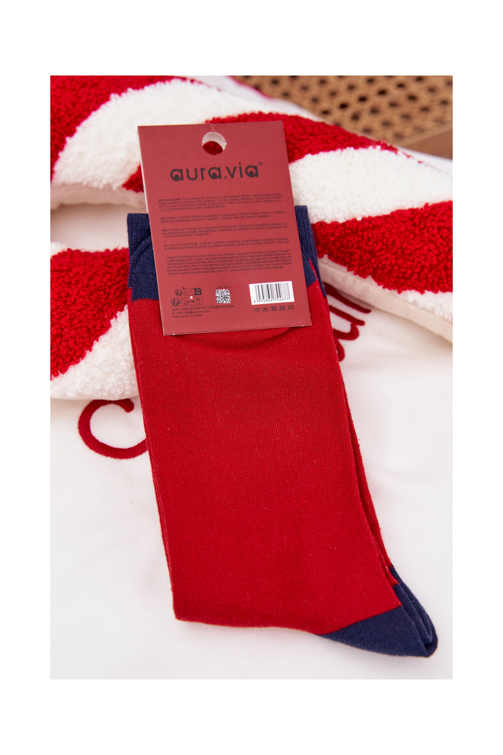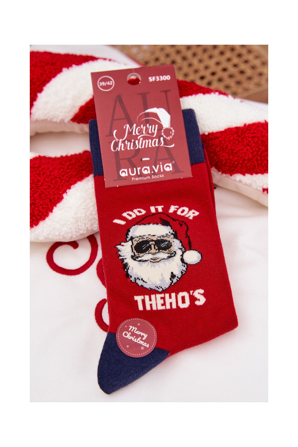 Vīriešu Ziemassvētku zeķes ar Ziemassvētku vecīša brillēm, sarkanas-tumši zilas krāsas