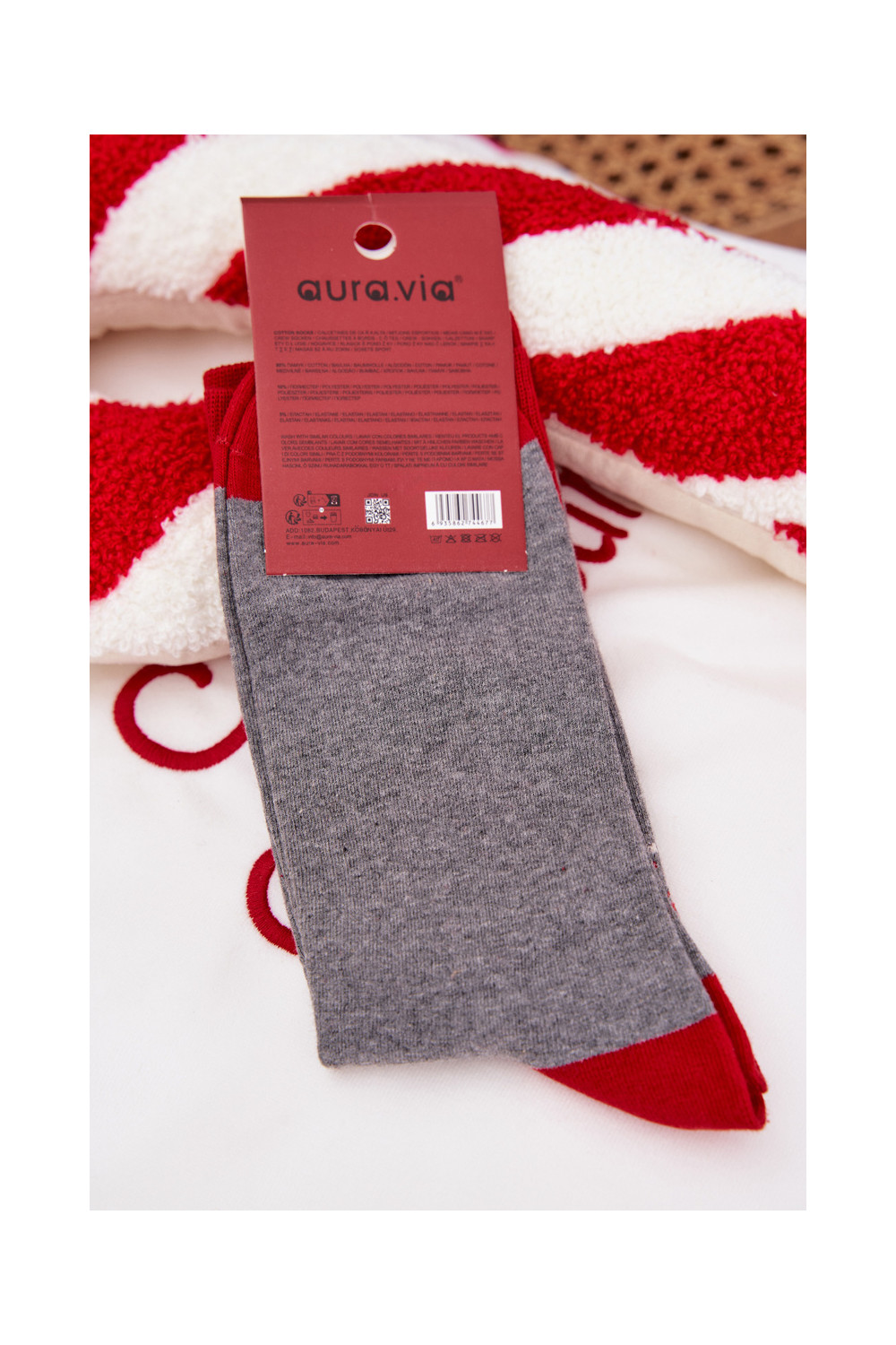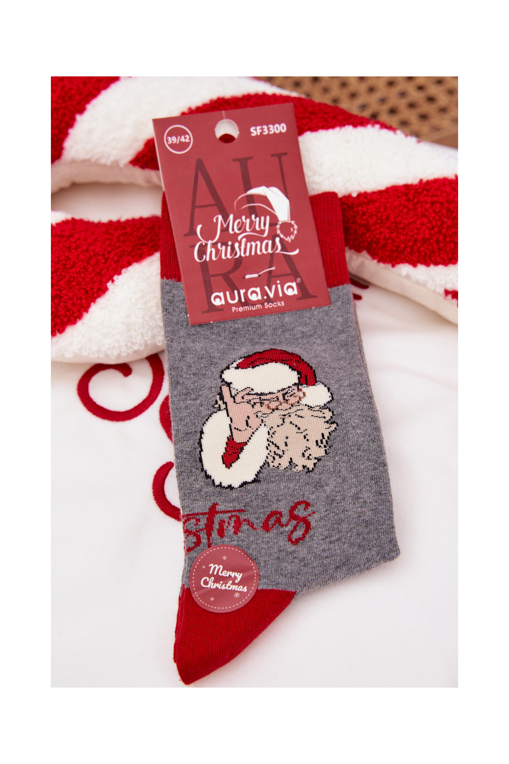 Vīriešu Ziemassvētku zeķes ar uzrakstu un Ziemassvētku vecīti, pelēkas krāsas