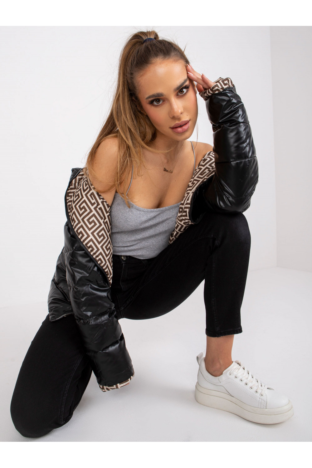 Melna abpusēja jaka ar Arta kapuci . Materiāla sastāvs: 100% poliestera mazgāšanas metode: veļas mašīna 30°C Produkta kods: YP-KR-CX4290.99p dominējošais raksts: bez raksta Stils: ikdienišķs Gadījums: ikdienišķs, darbam, pilsētai Modelis valkā si