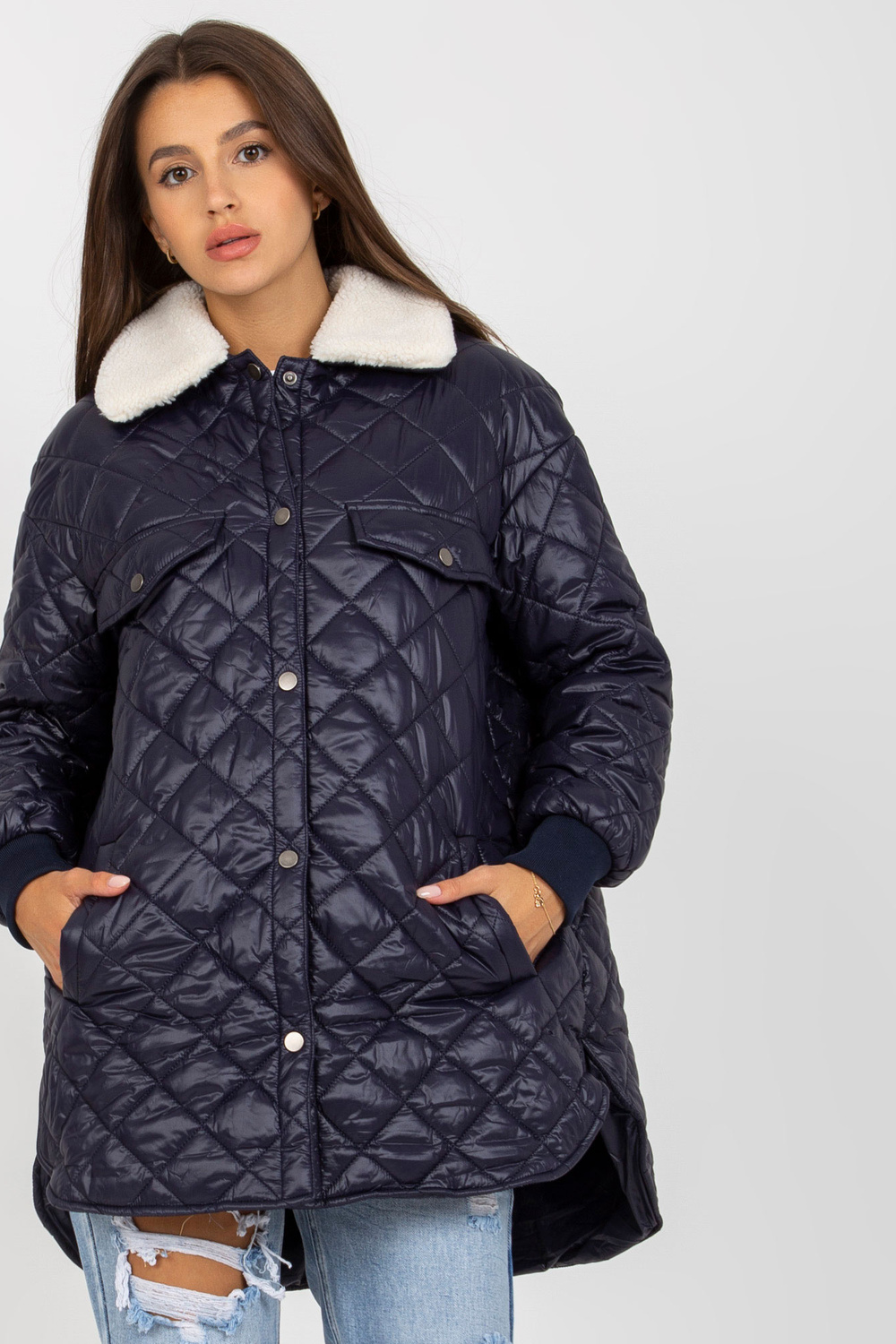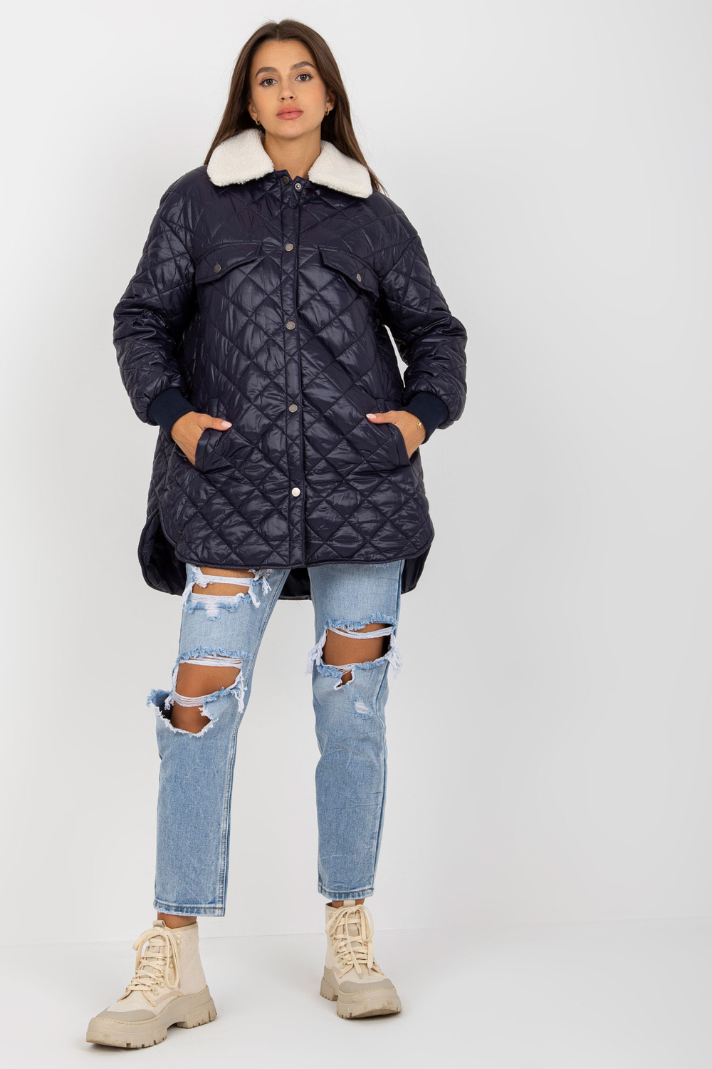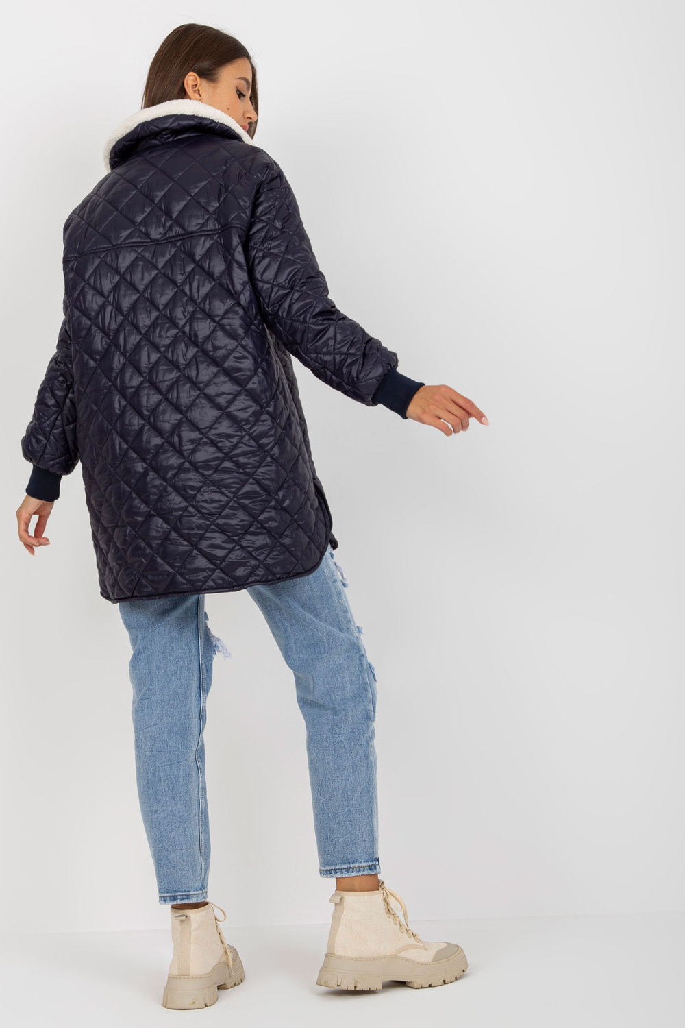 Navyblue stepēta jaka ar mētelimētelis.