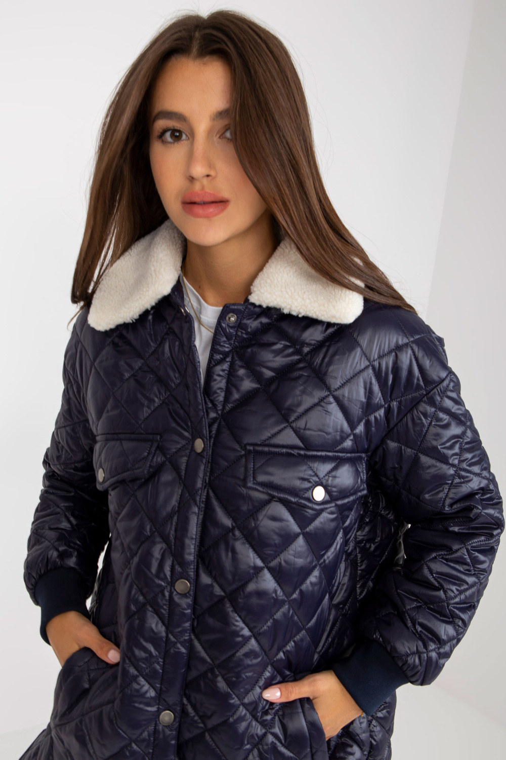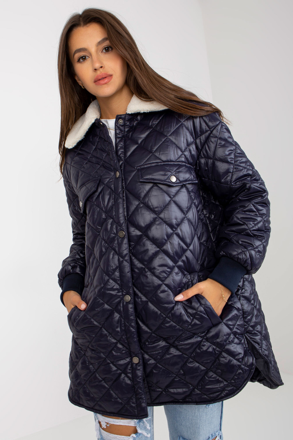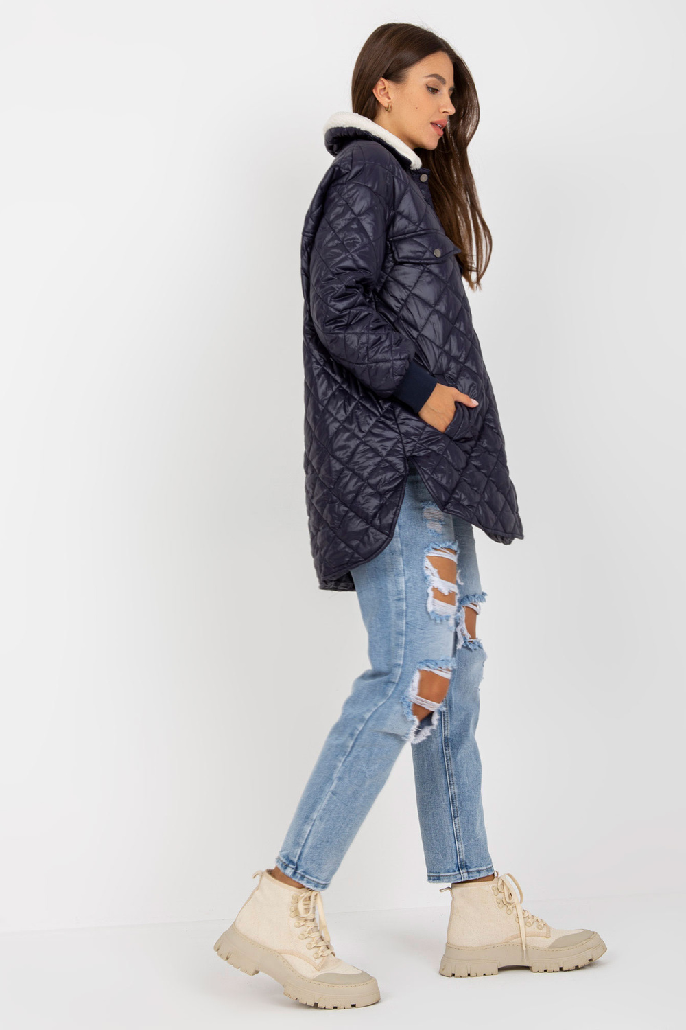 Navyblue stepēta jaka ar mētelimētelis.