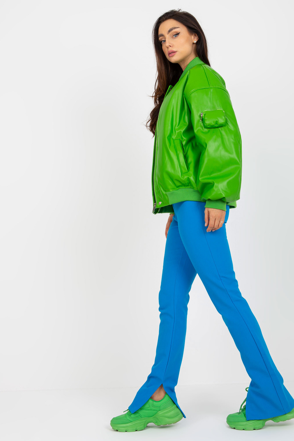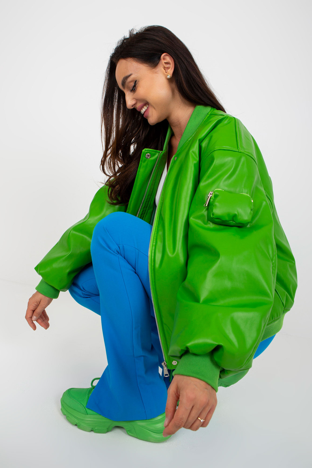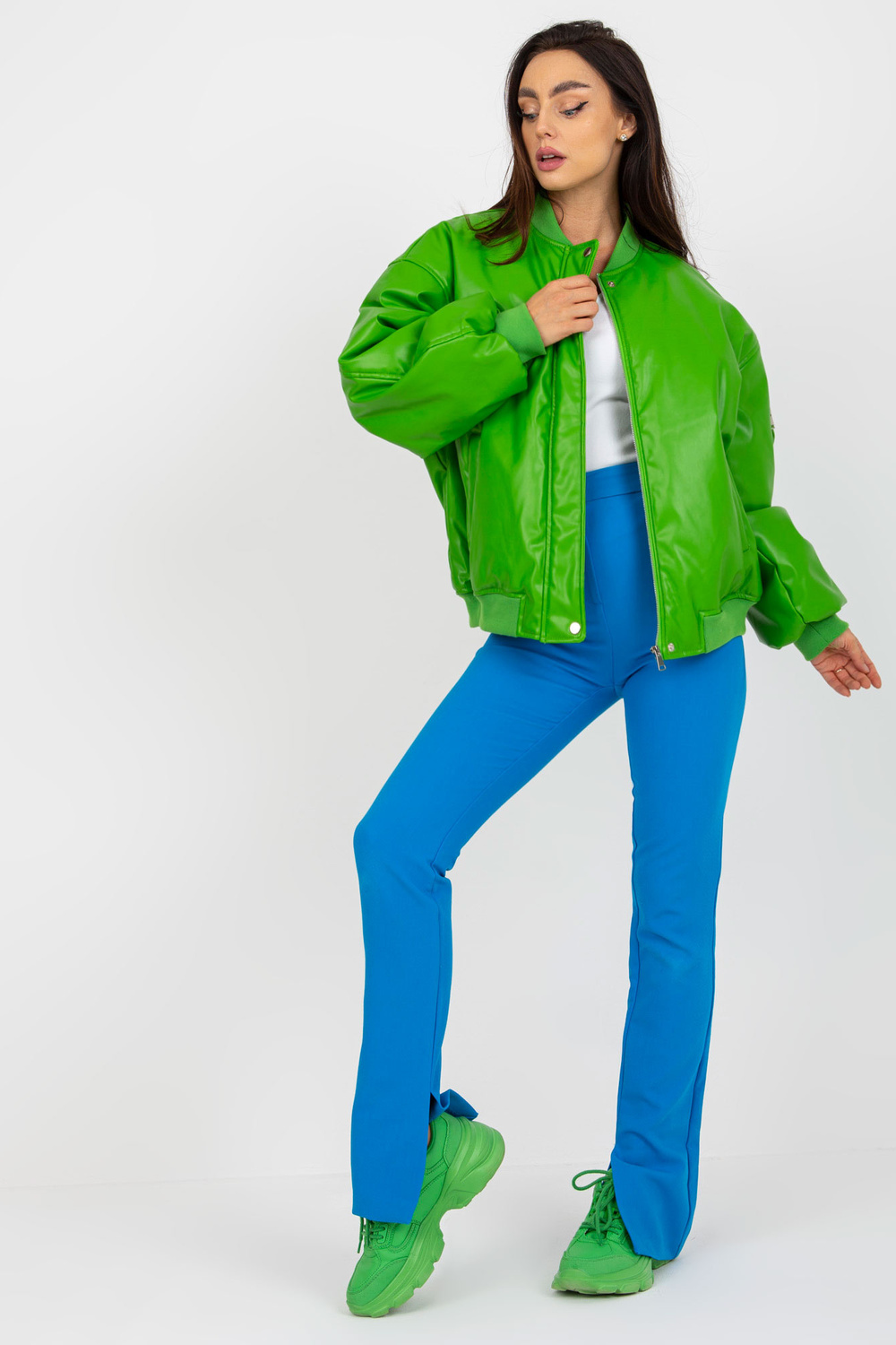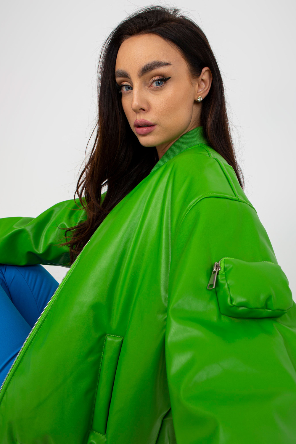 Gaiši zaļa pārejas jaka no eko-ādas.