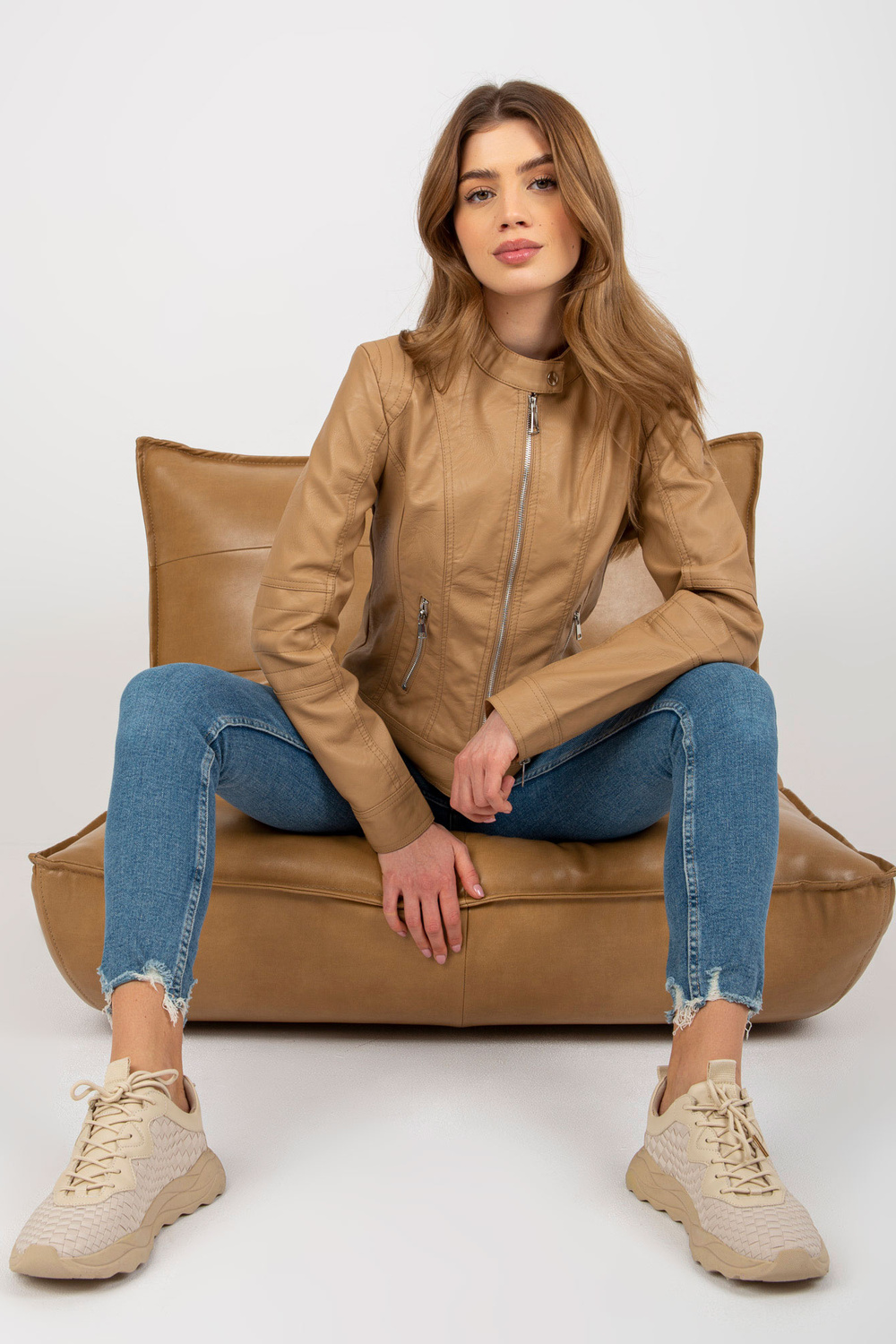 Vieglā kamieļa motociklistu eko-ādas jaka ar Eulalie oderi.