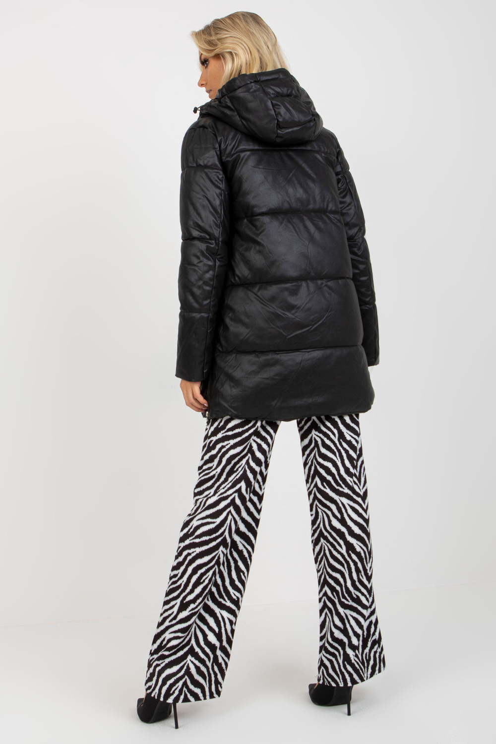 Schwarze Winterjacke aus Öko-Leder mit Schlitzen.