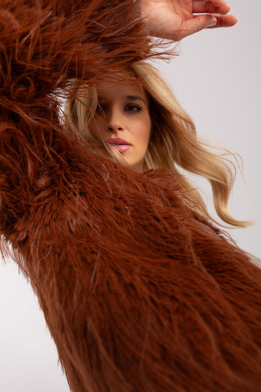 Tumši oranža kažokādas pārejas jaka bez kapuces .