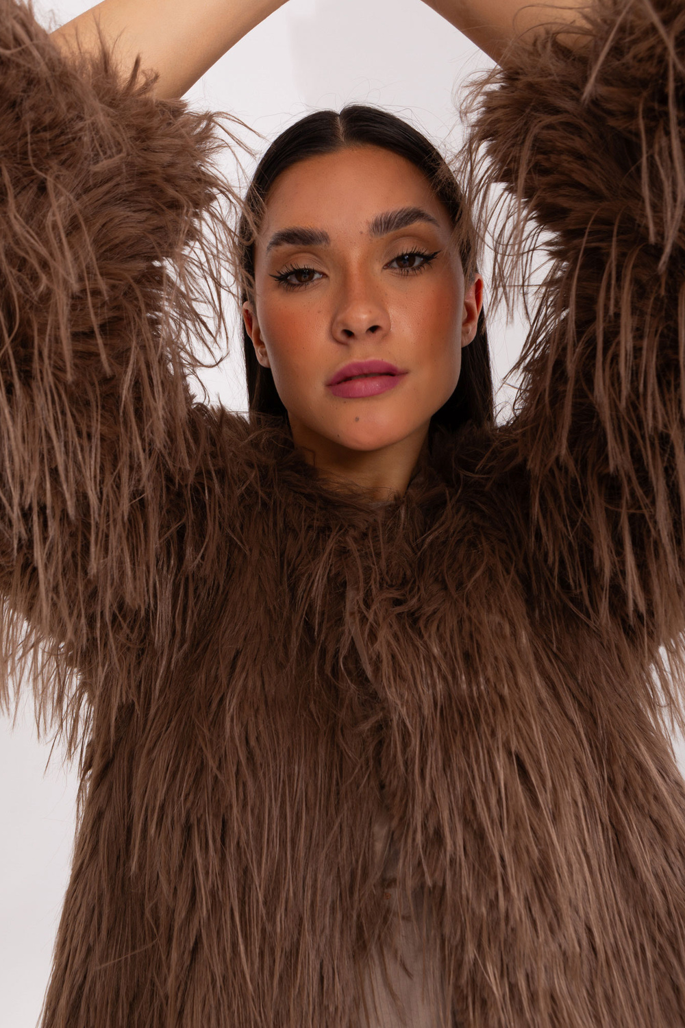 Brūnas kažokādas pārejas jaka ar kabatām .