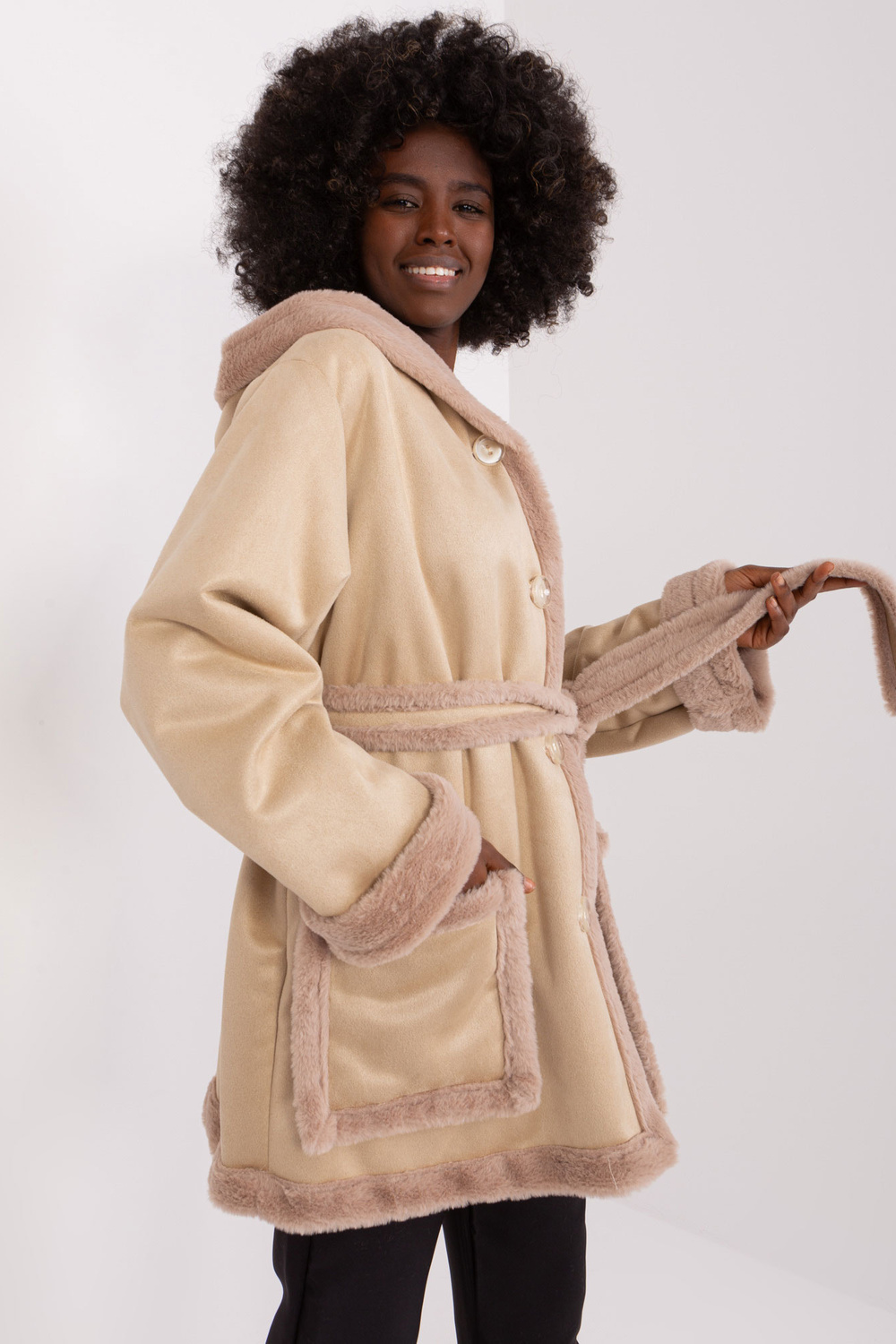 Mēteļa izmēri S/M izmērā, mērot plakaniski: paduses platums - 64 cm, kopējais garums - 77 cm, piedurknes garums - 62 cm.