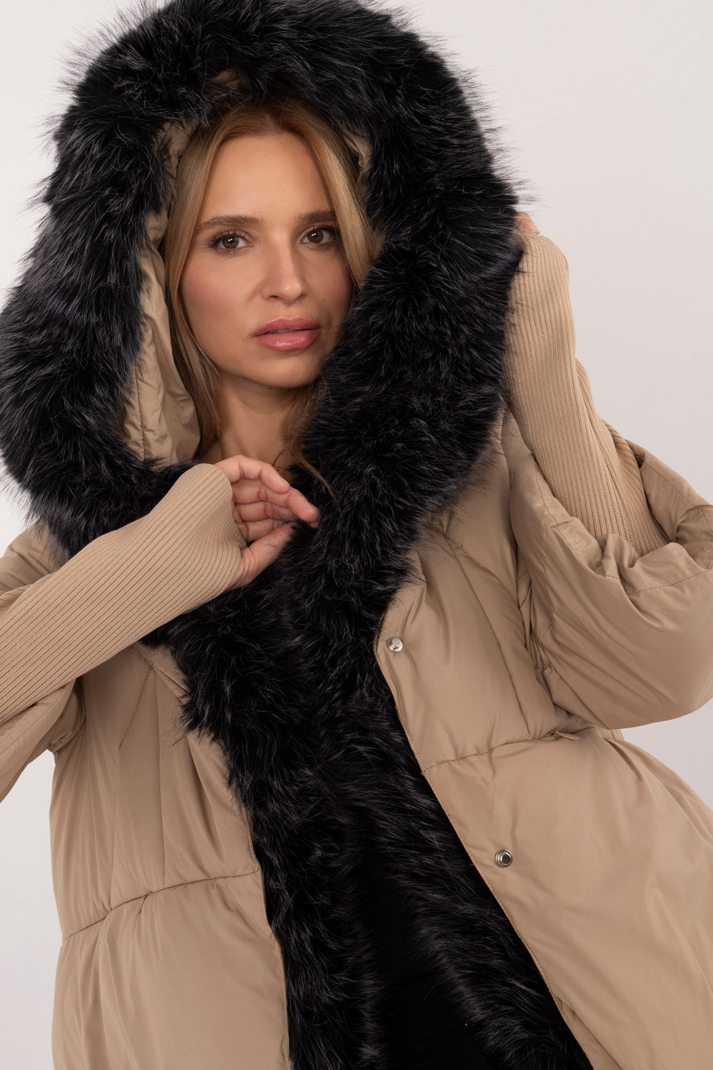 Modele valkā vienu izmēru. Modeļa izmēri: augums 175 cm, krūtis 90 cm, viduklis 66 cm, gurni 94 cm.