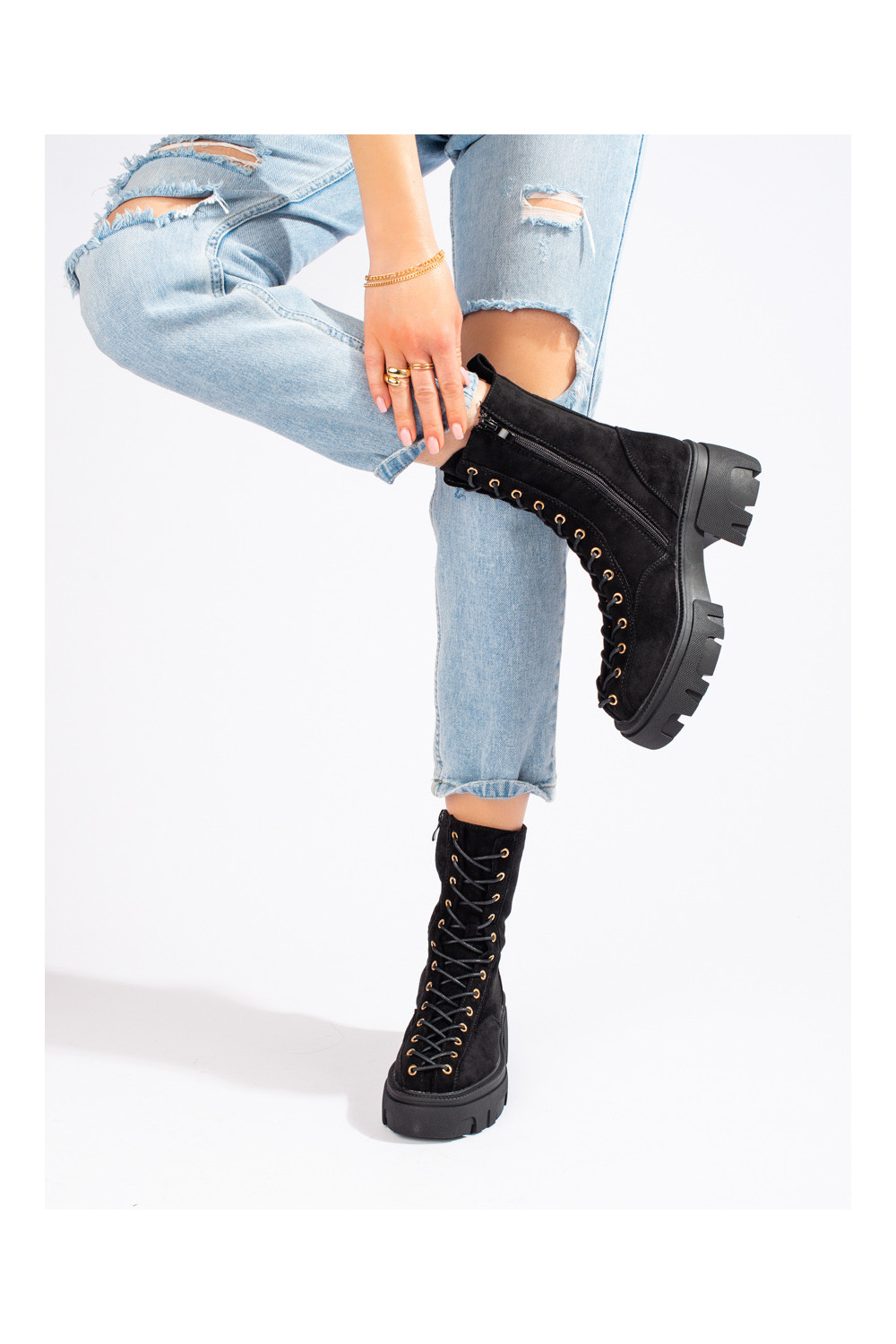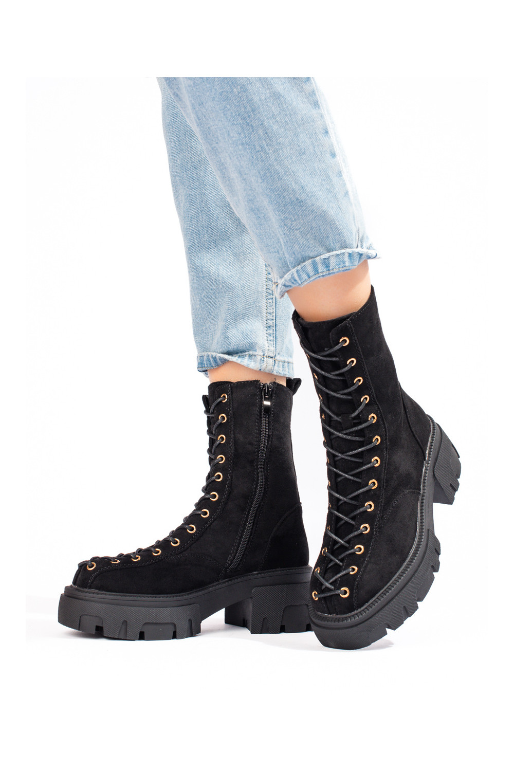 zamšādas mežģīņots sieviešu zābaki Melnas krāsas