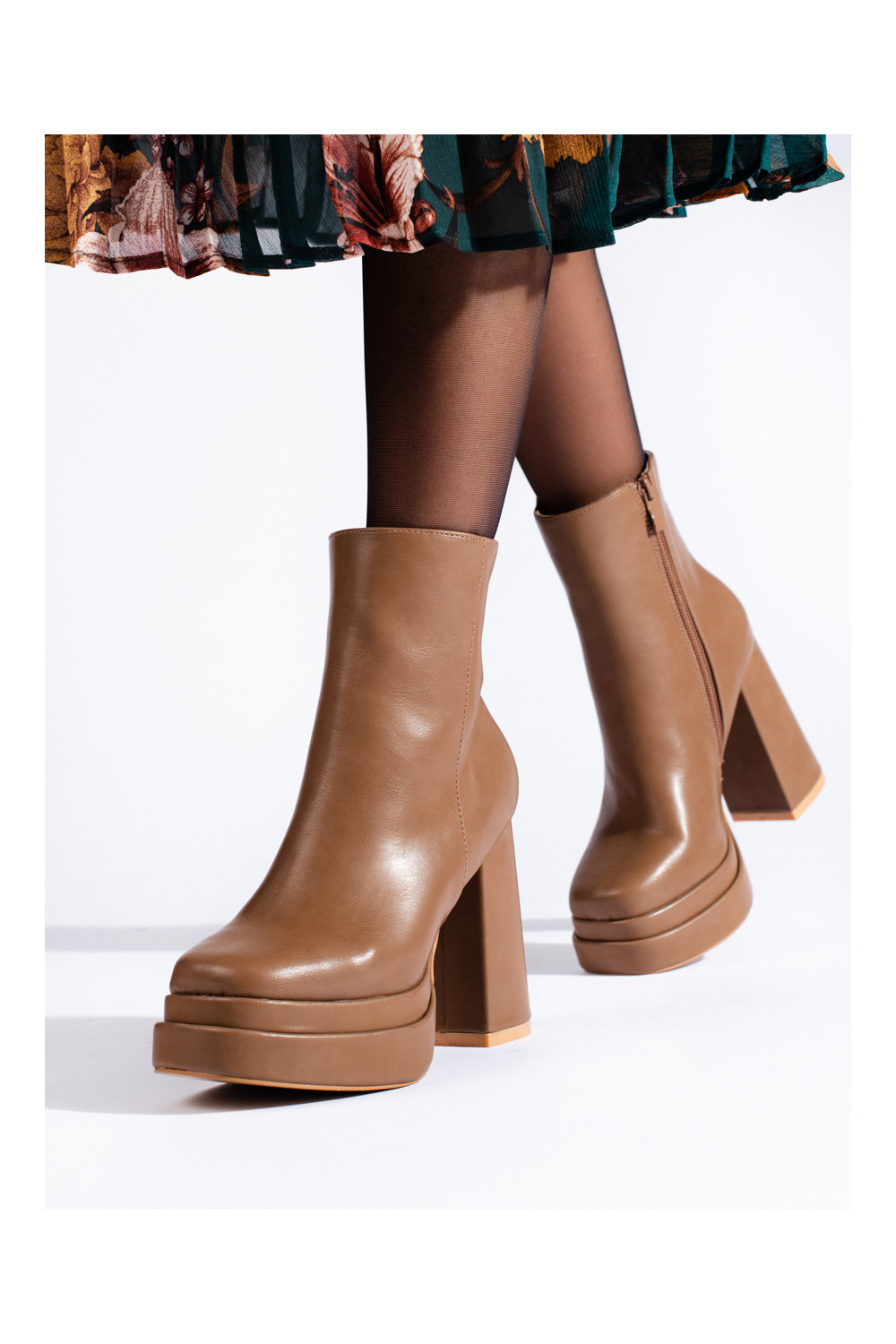 smilšu krāsas zābaki augstpapēžu kurpēs