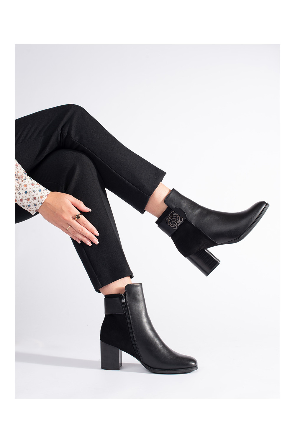 melnas krāsas Pusgarie zābaki ar dekoratīvu svītru