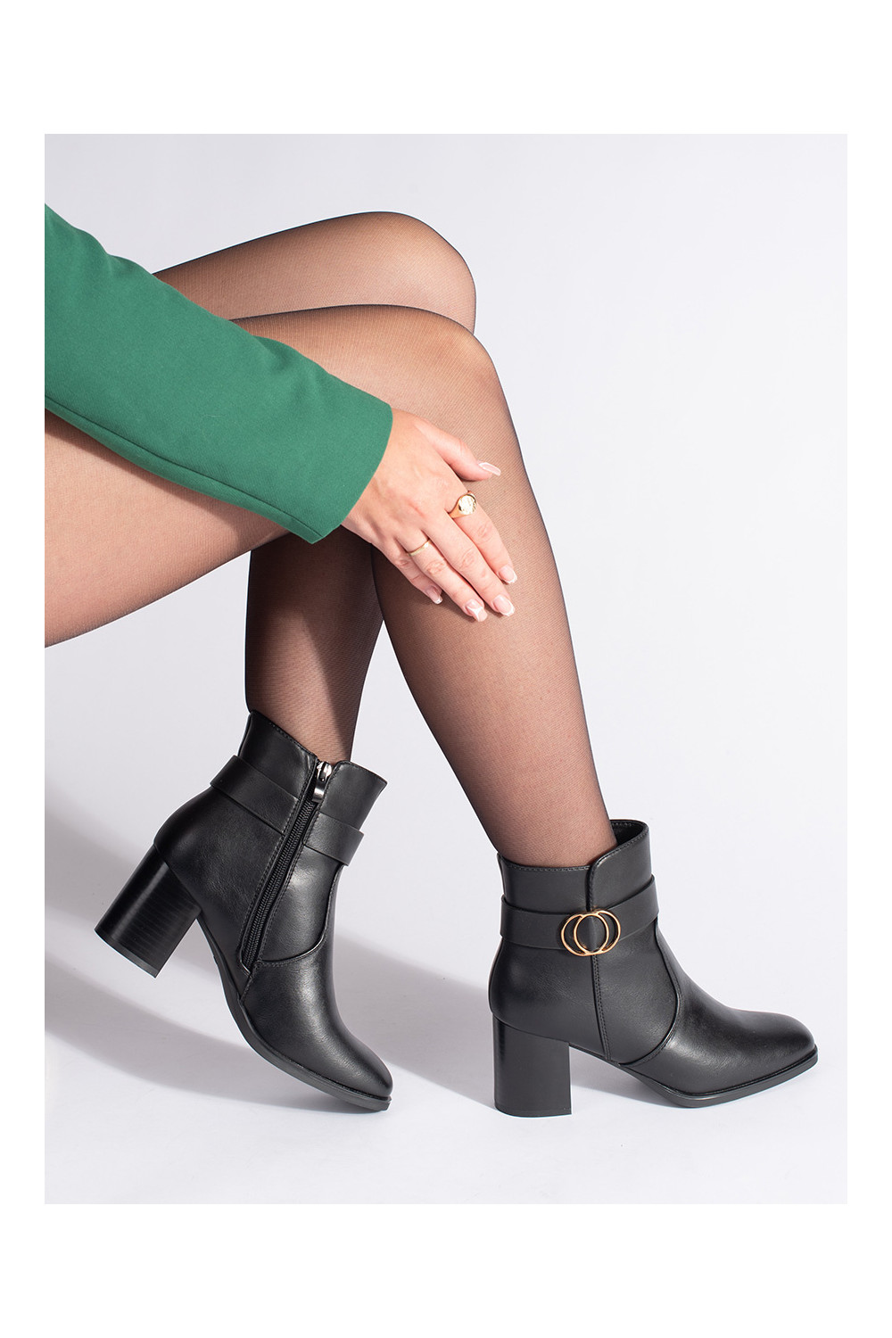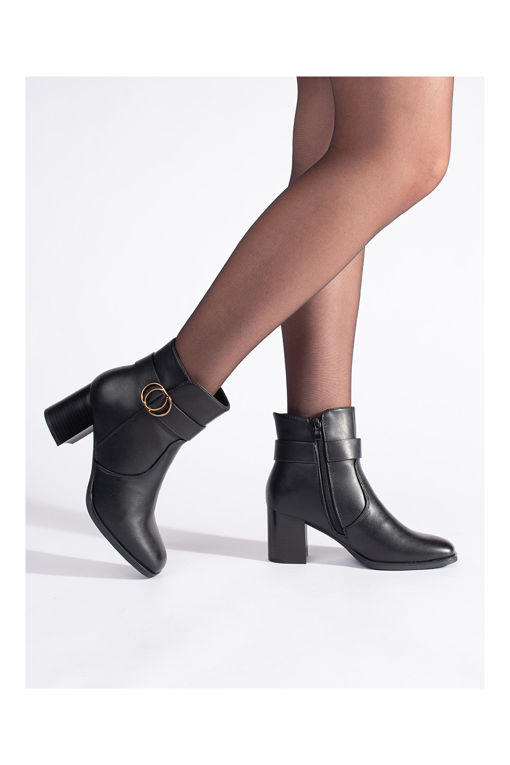 melnas krāsas Pusgarie zābaki ar kvadrātveida purngalu