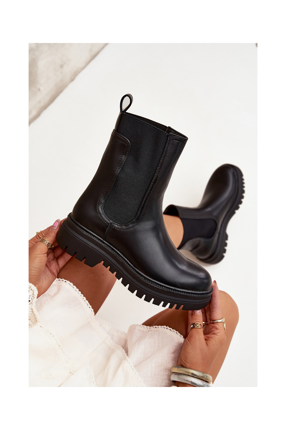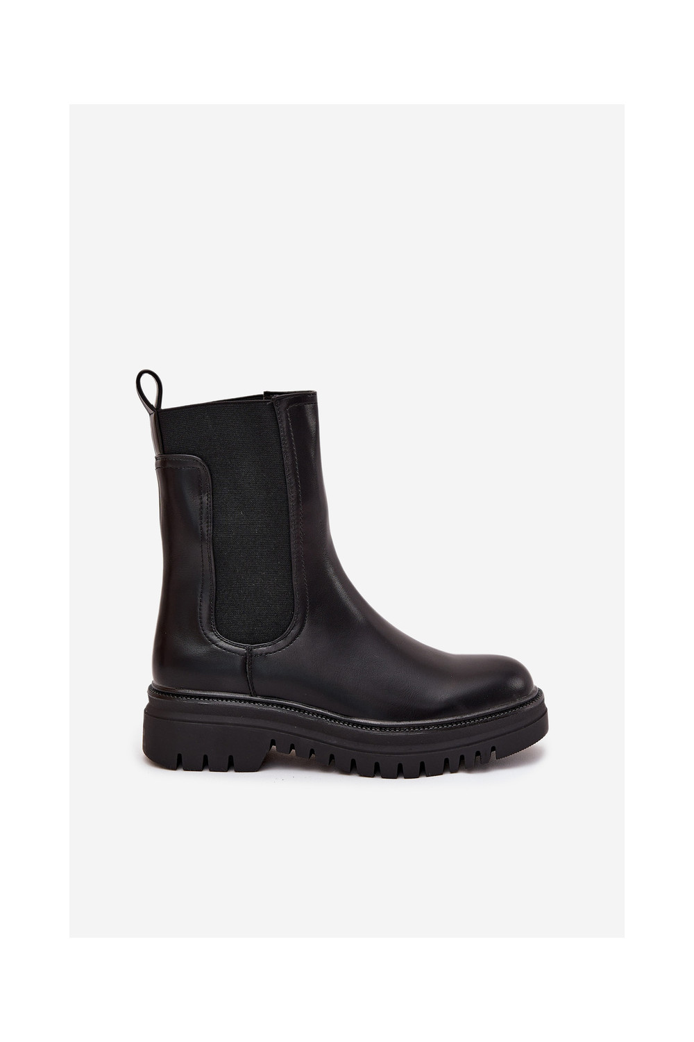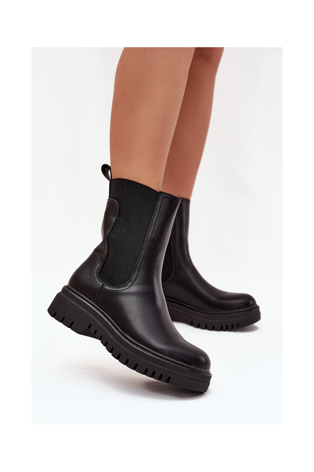 Stilīgi sieviešu zābaki ar platformu un plakanajiem papēžiem, ievelkamā modeļa, melnā krāsā Ravessa