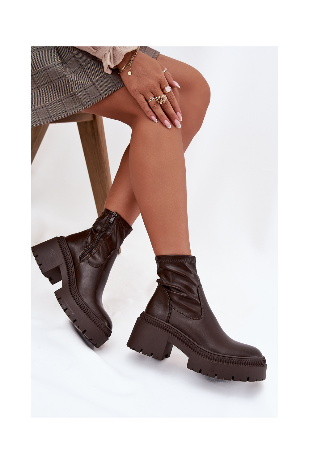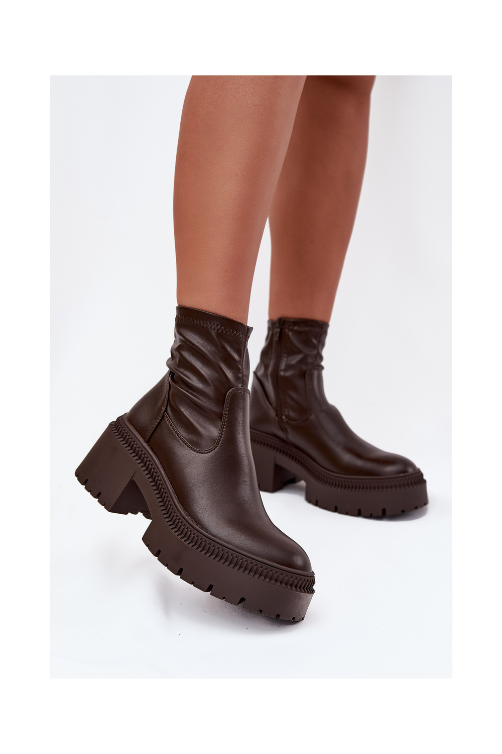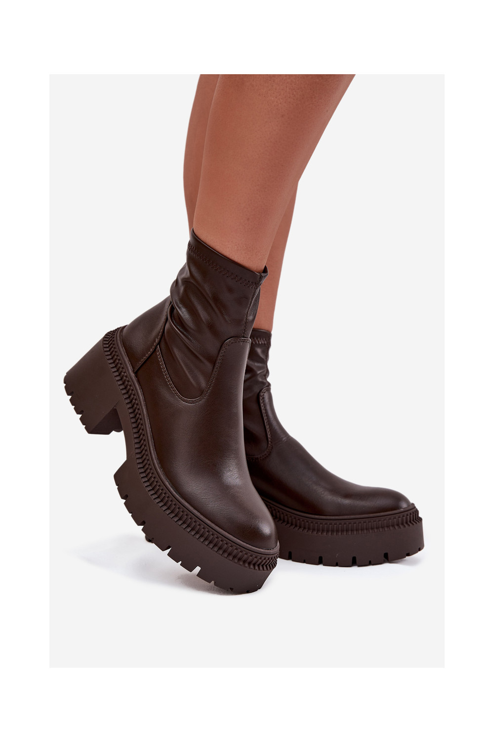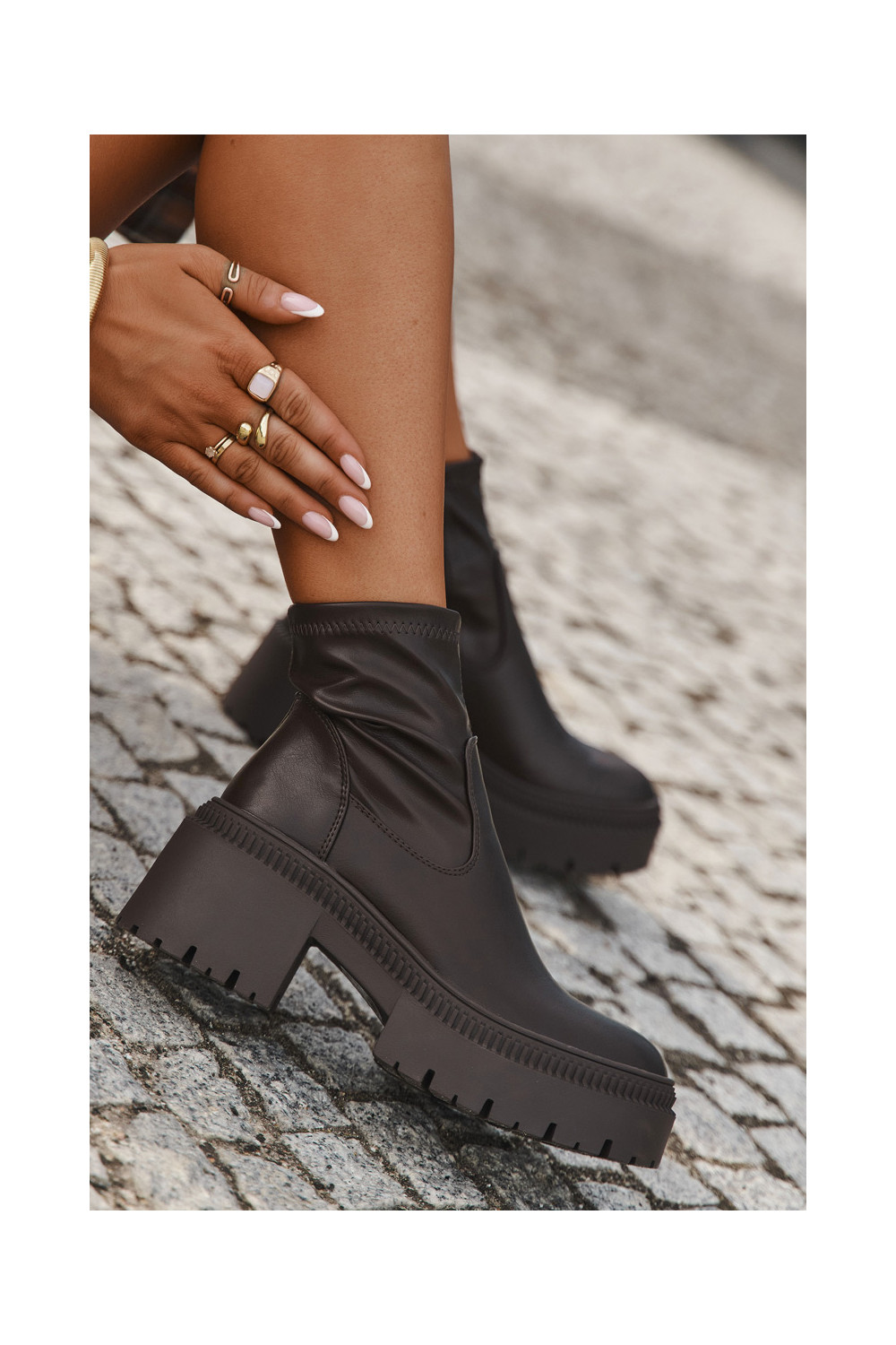 Sieviešu zābaki uz masīviem papēžiem un platformas no eko ādas brūnā krāsā Elvianne