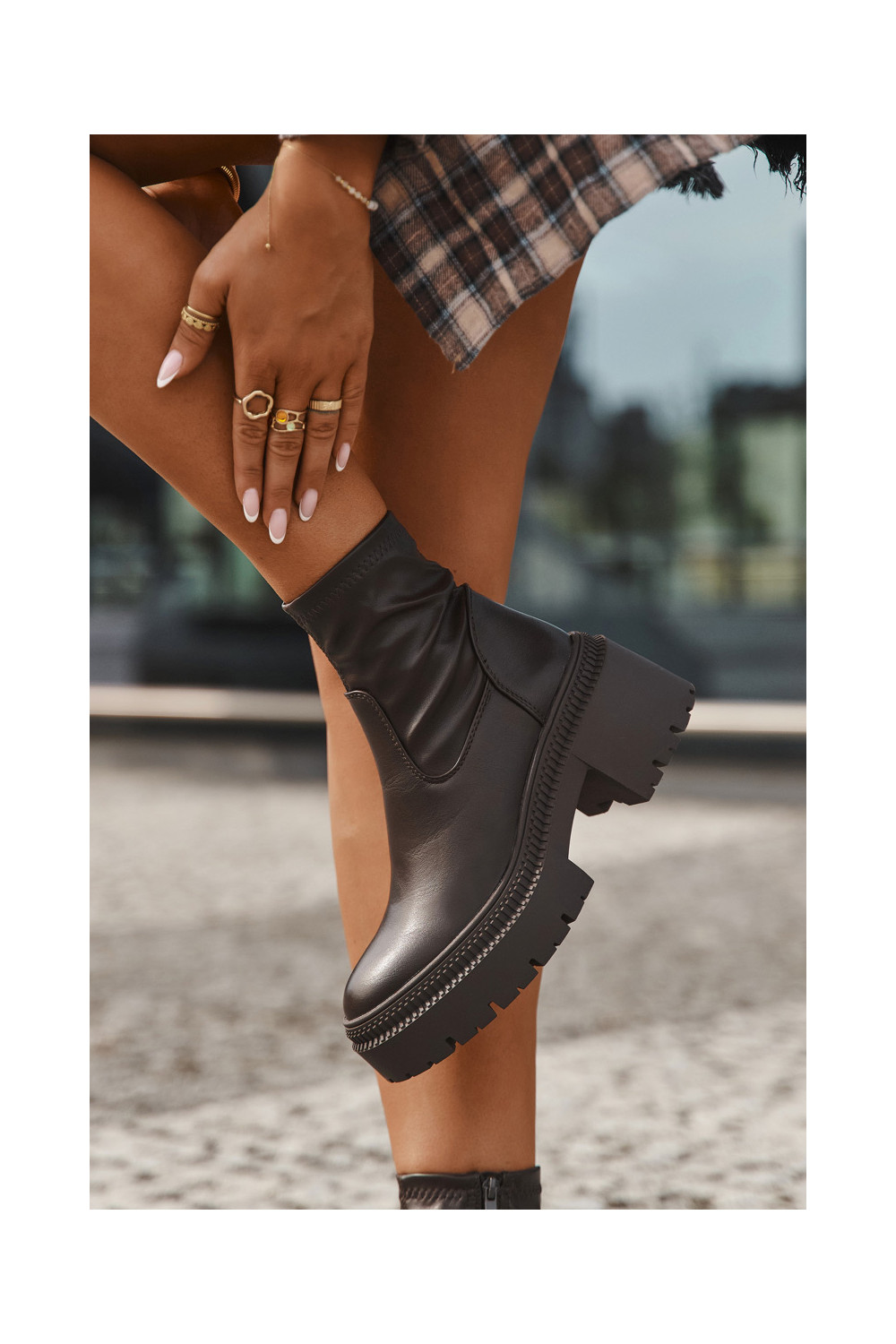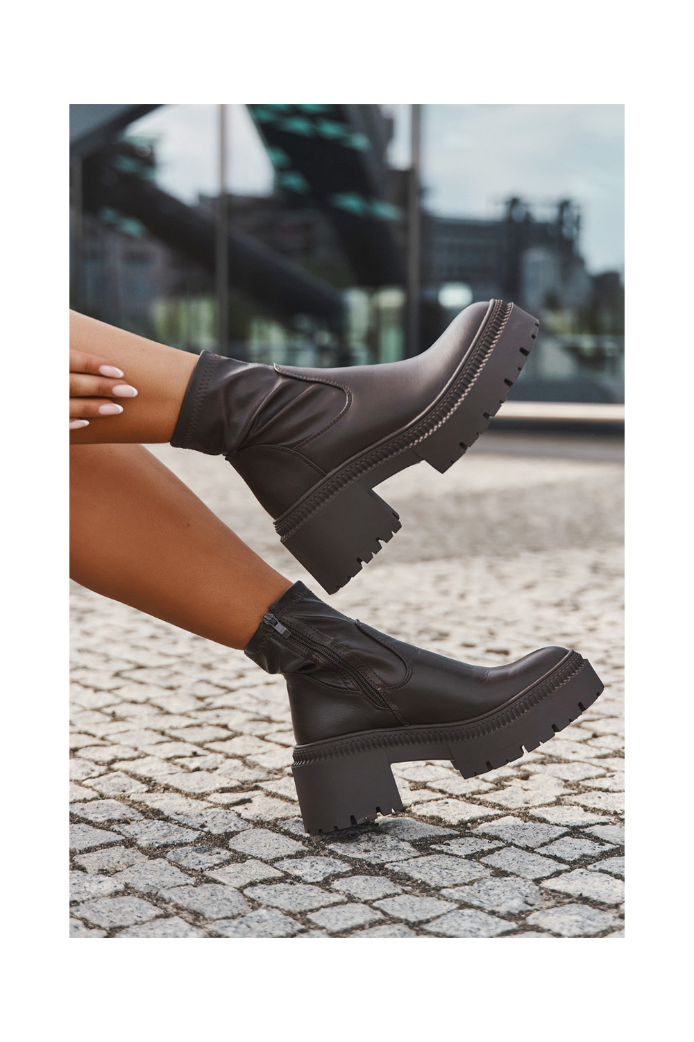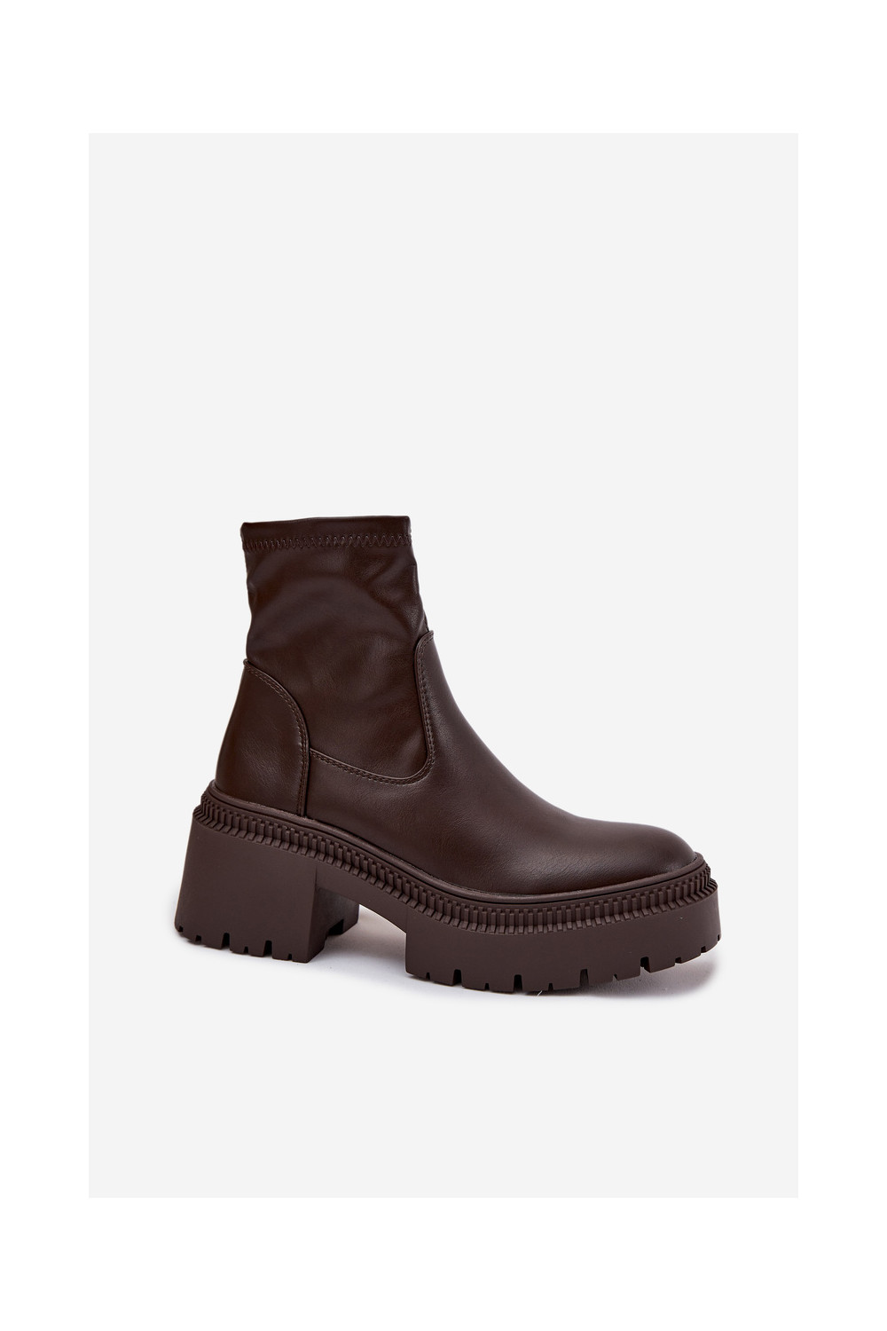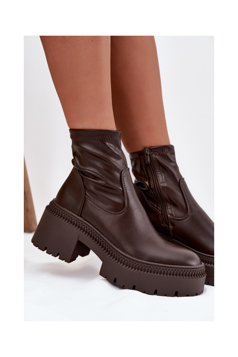 Sieviešu zābaki uz masīviem papēžiem un platformas no eko ādas brūnā krāsā Elvianne