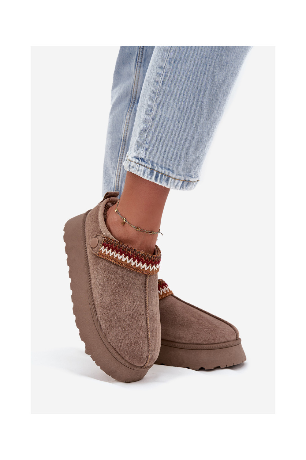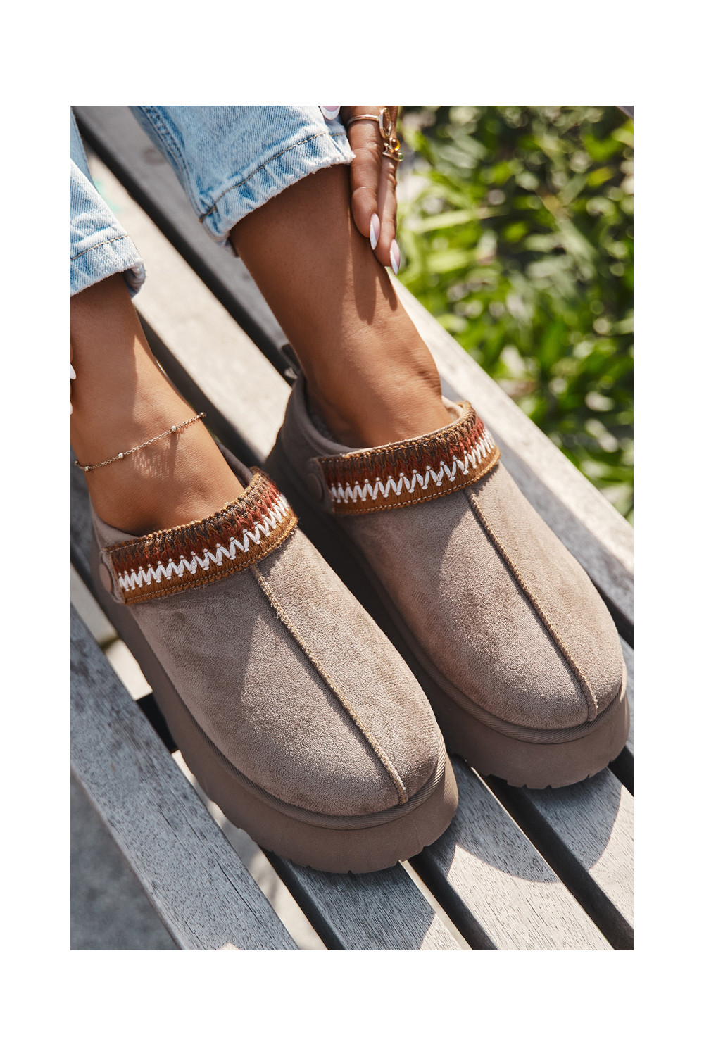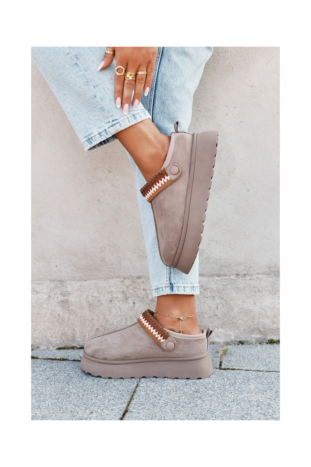 Sniega zābaki sievietēm zemi ar kustīgiem siksniņām un izšuvumu, ar platformu smilšu krāsā Lyrisse