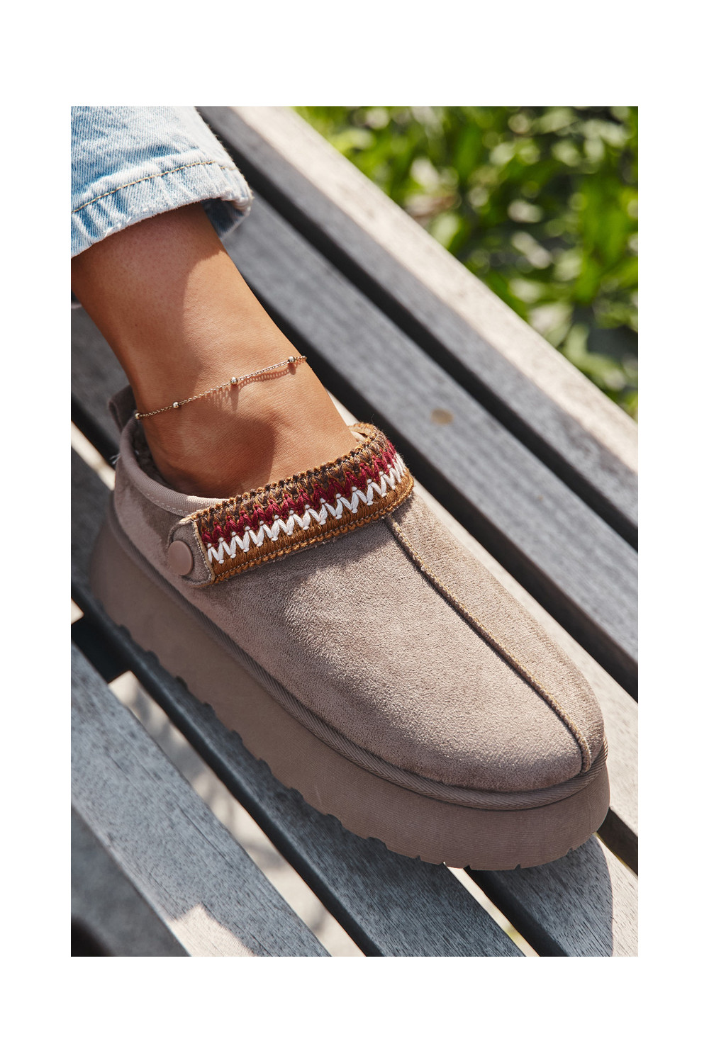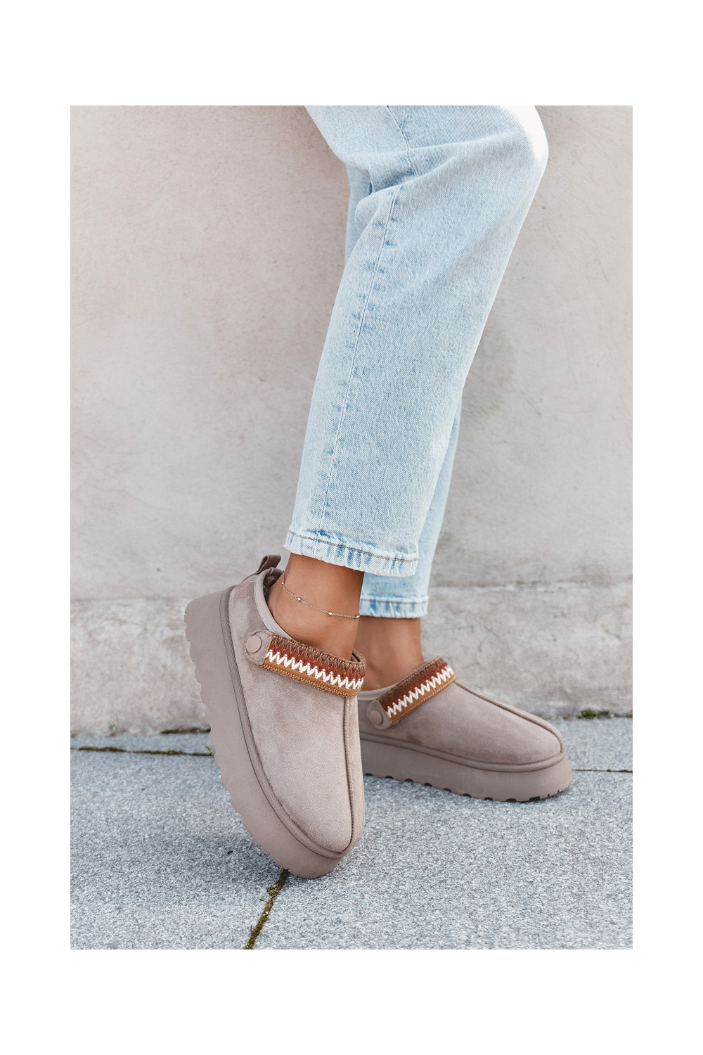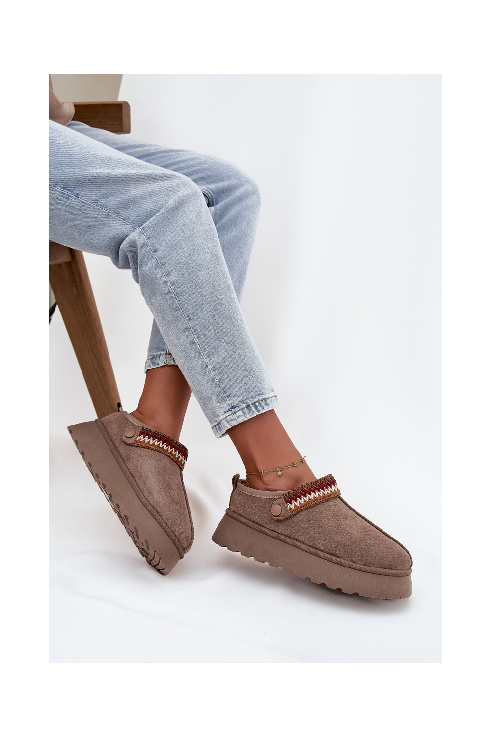 Sniega zābaki sievietēm zemi ar kustīgiem siksniņām un izšuvumu, ar platformu smilšu krāsā Lyrisse