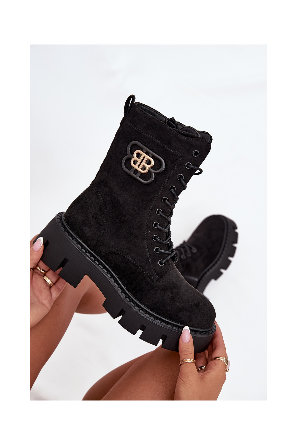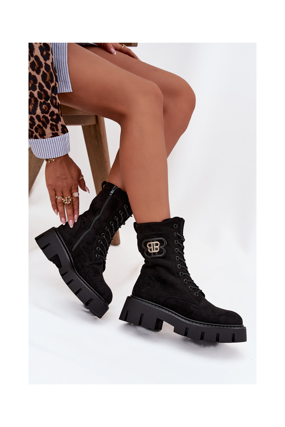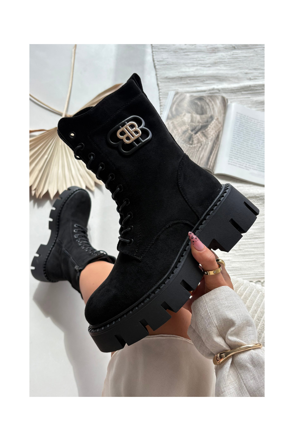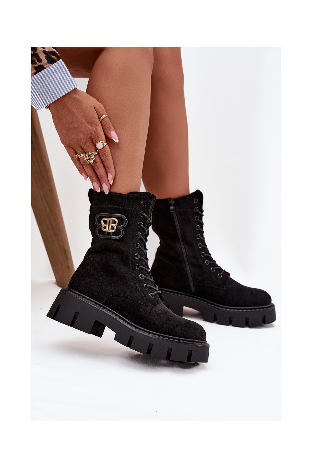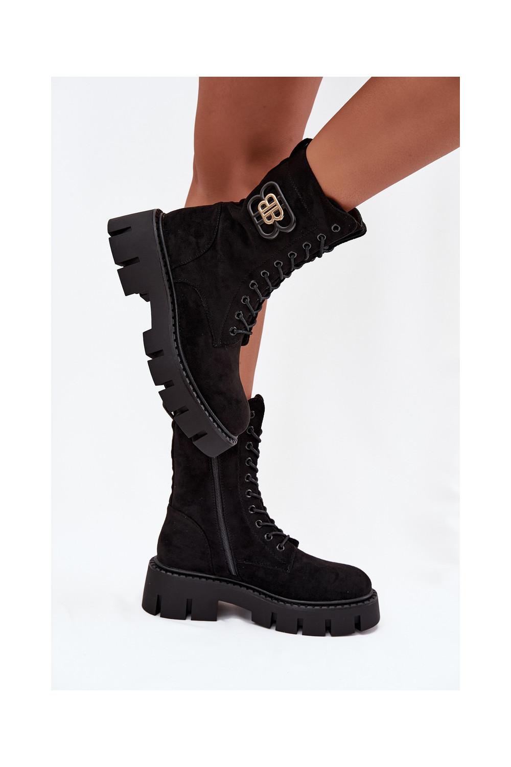 Siltināti zābaki un nokeri sievietēm ar ornamentiem melnā krāsā Melisse