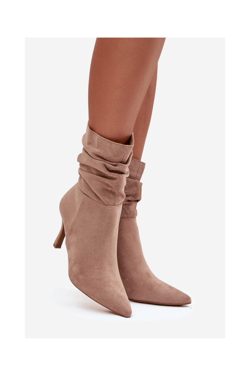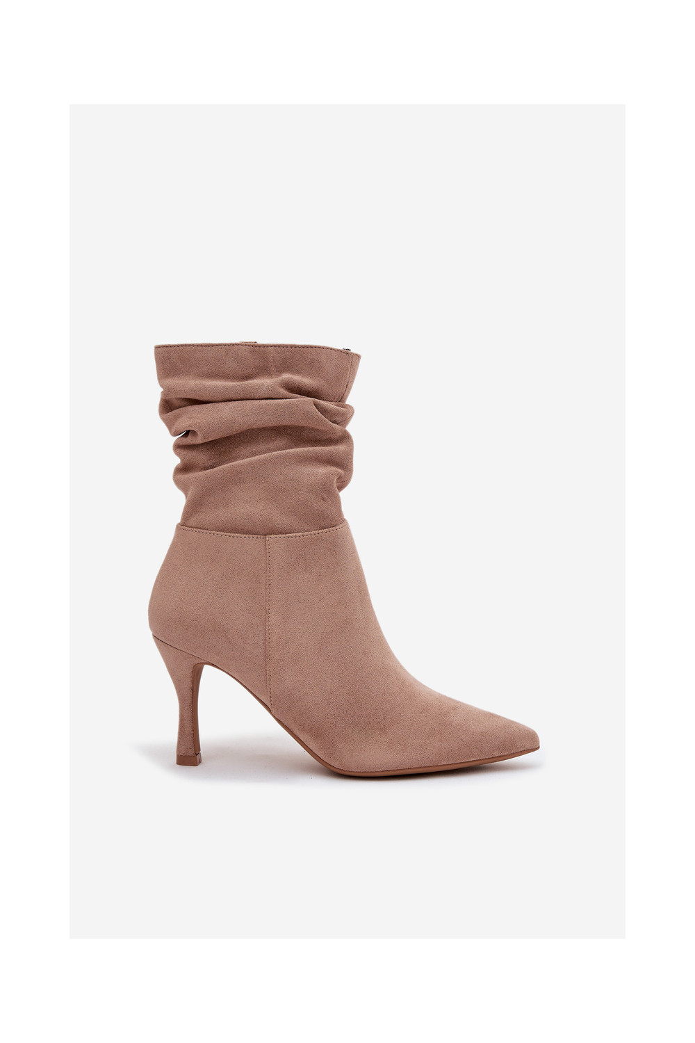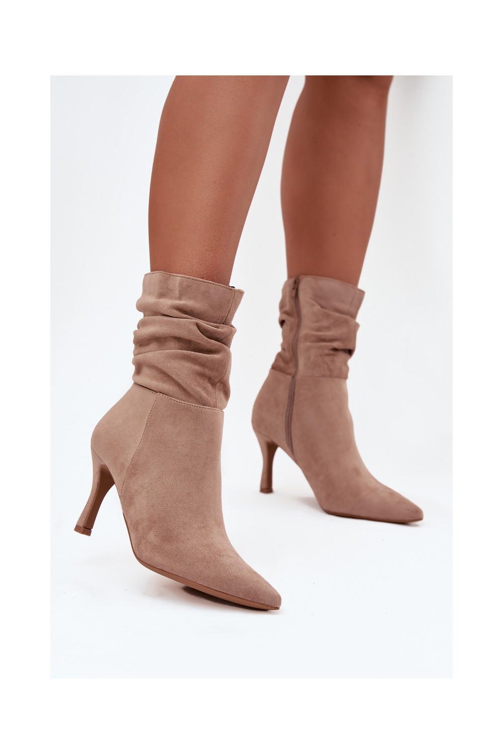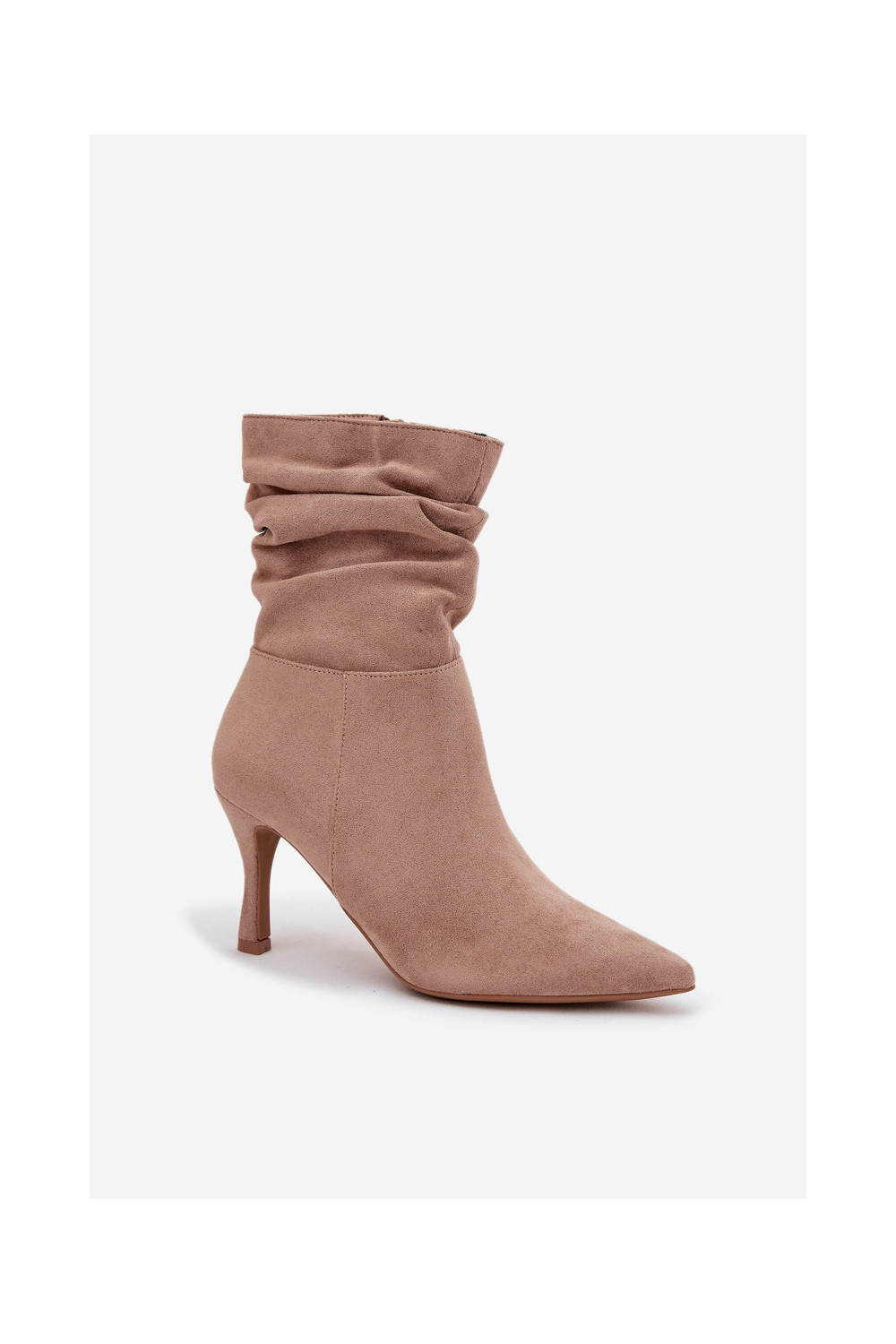 Sieviešu zābaki ar plāniem papēžiem, viļņotu augšdaļu no eko zamša ar slēdzēju smilšu krāsā "Ulisse"