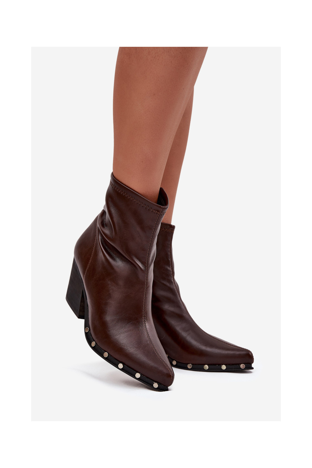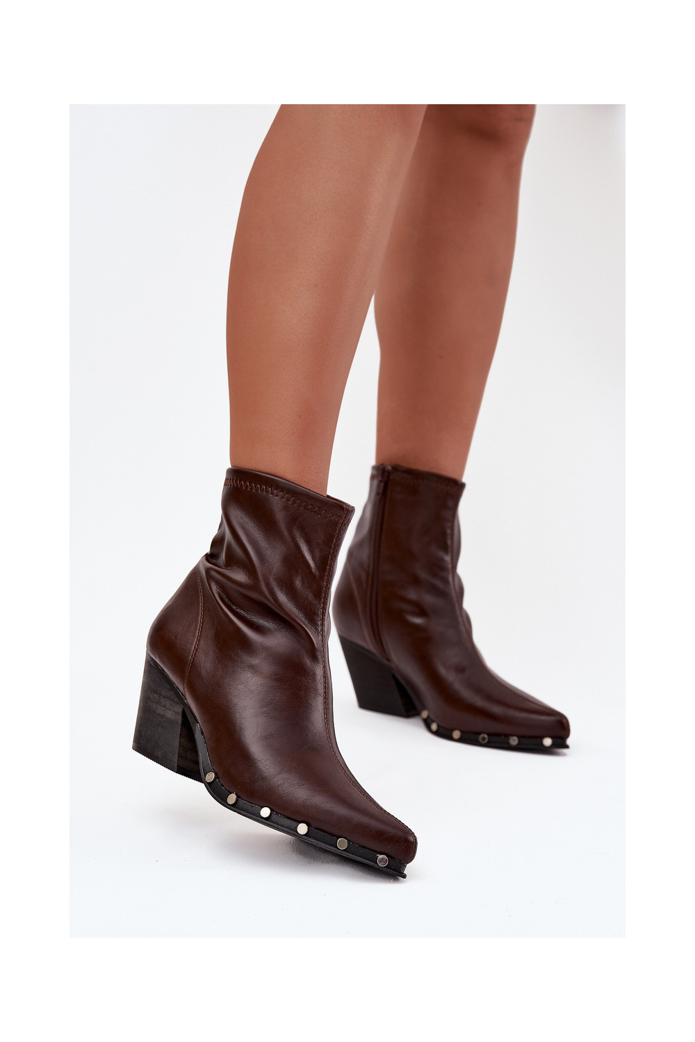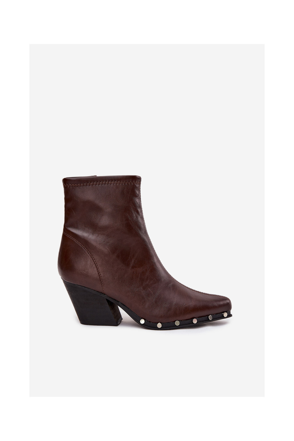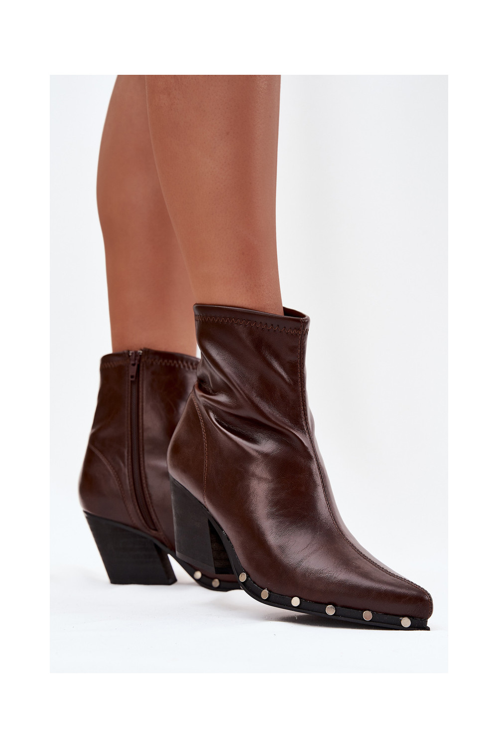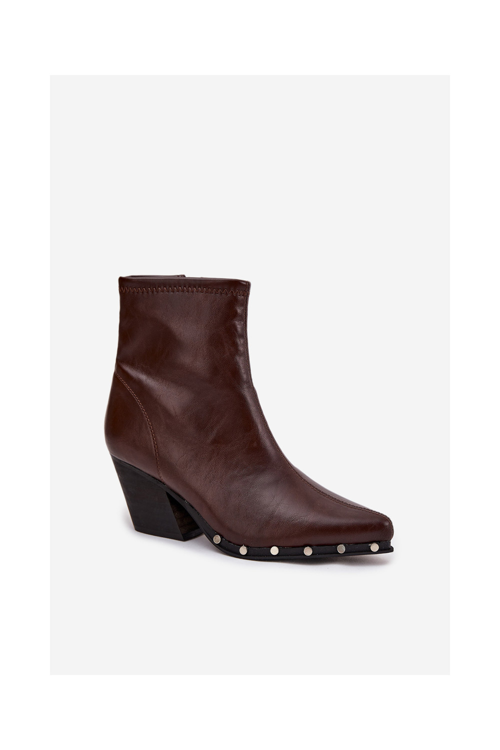 Brūni sieviešu zābaciņi kovboju stilā no mākslīgās ādas ar papēžiem Abrielle