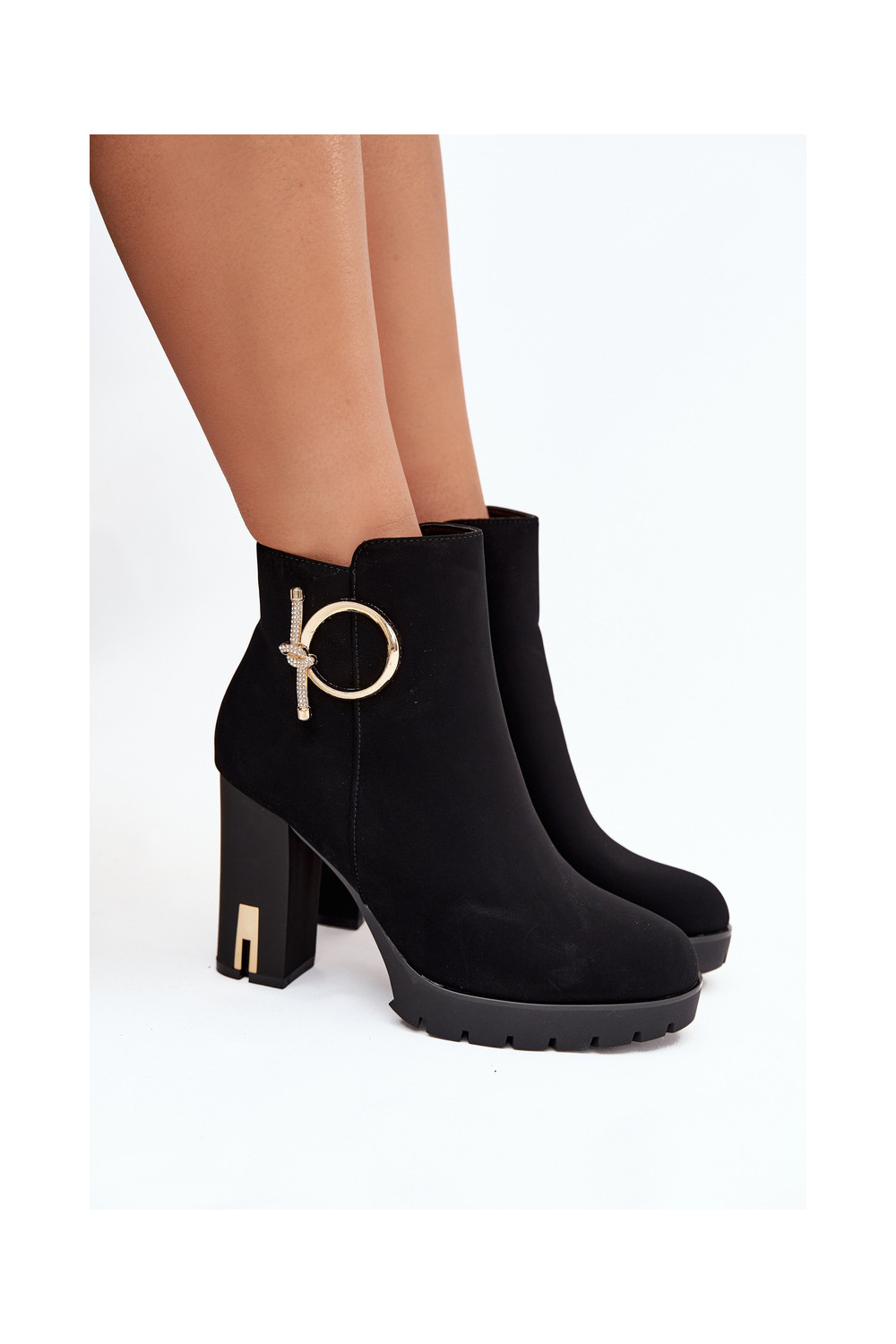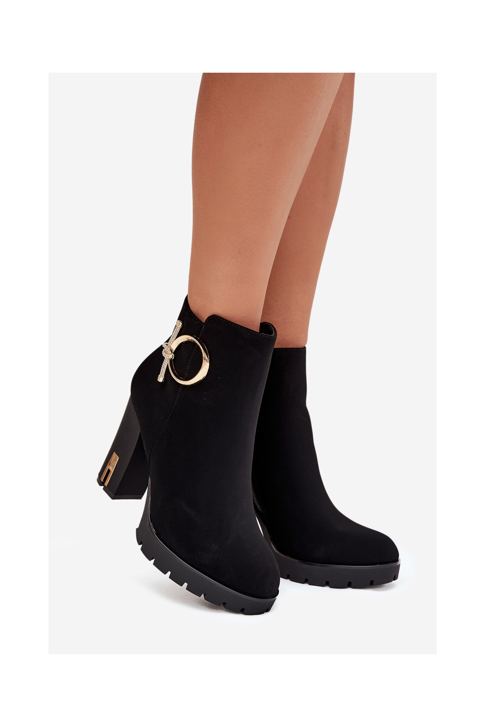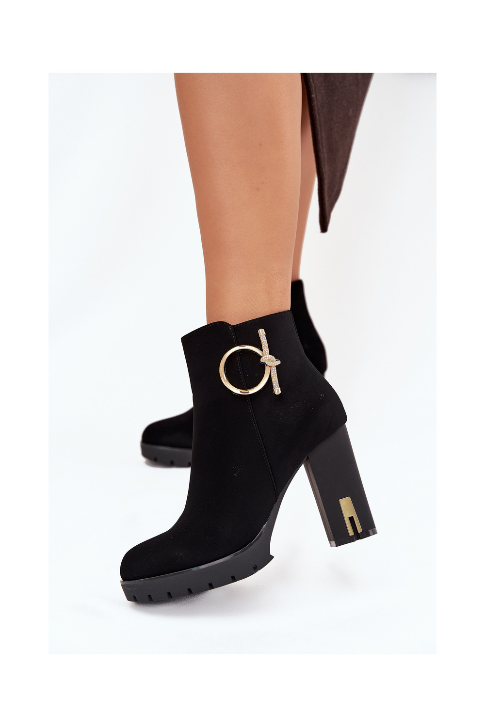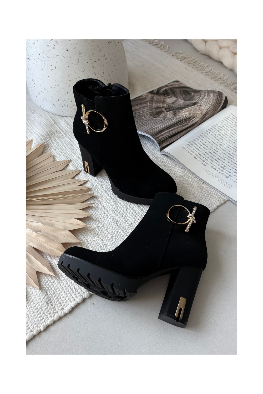 Siltie sieviešu zābaciņi ar papēžiem un zelta detaļām melnā krāsā Ysolde