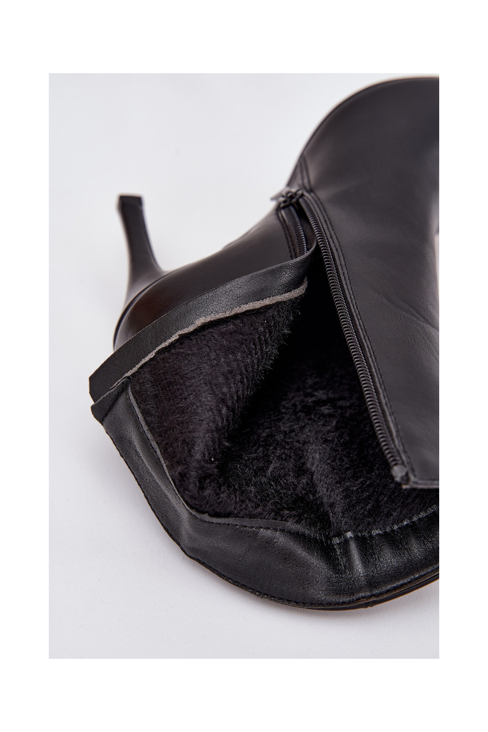 Pašiltināti sieviešu zābaki ar plāniem papēžiem no eko ādas, melnā krāsā, Nolisse