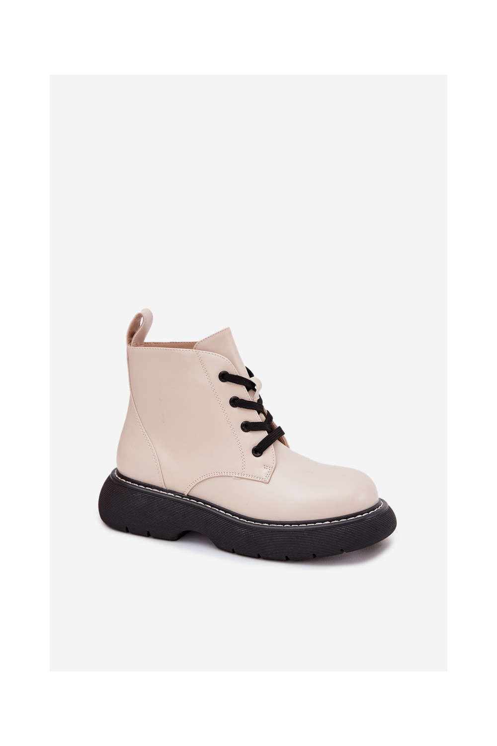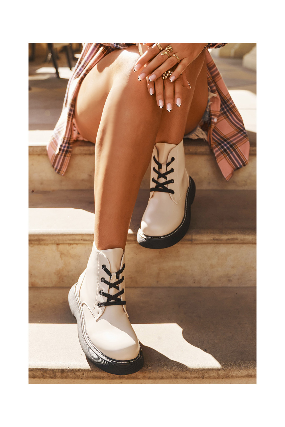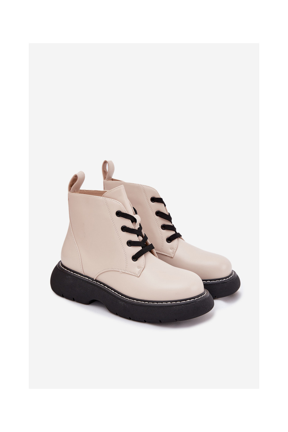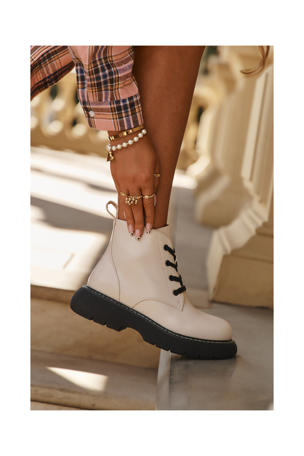 Pašiltināti sieviešu zābaki ar platformu un mežģīnēm, kaulu krāsā, Harmine