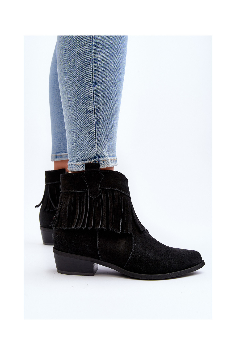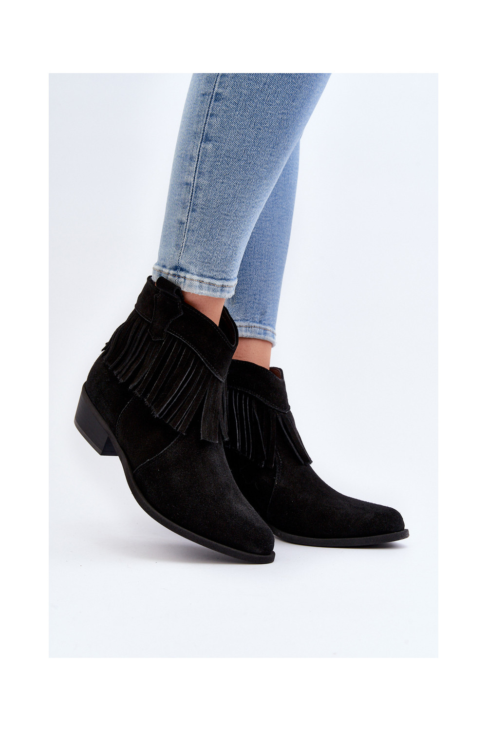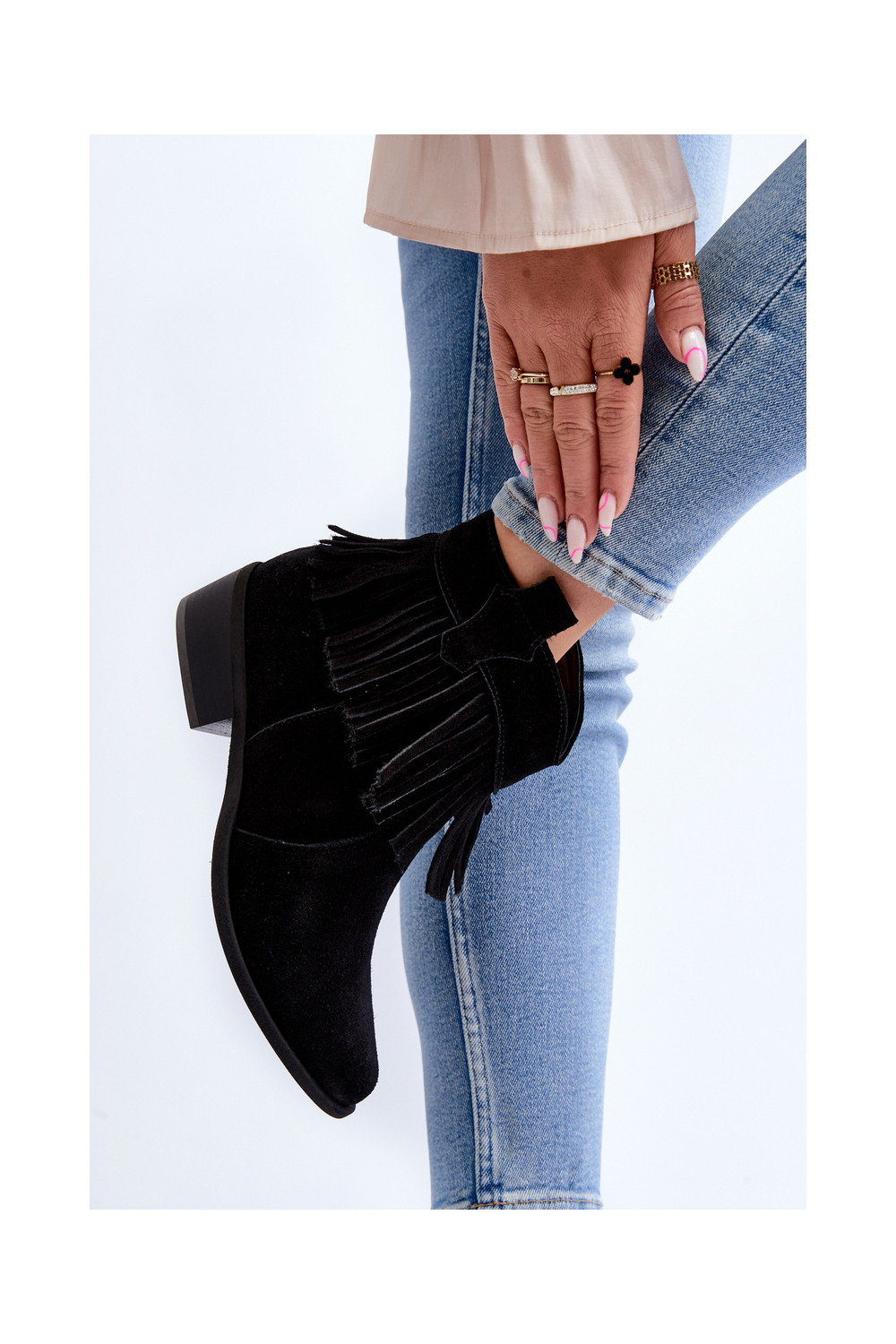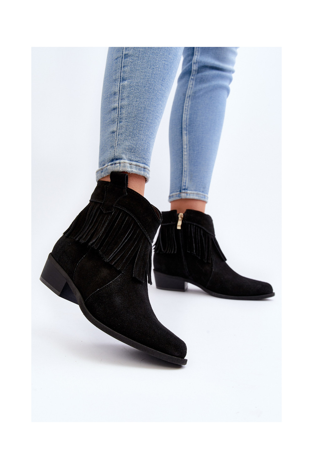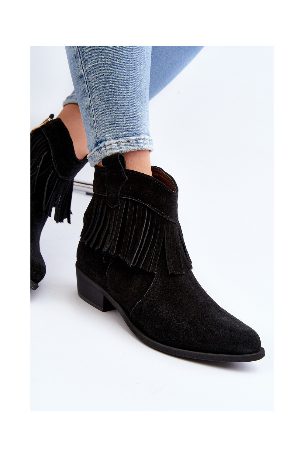 Zazoo 3430 sieviešu zamšādas zābaki ar pušķiem melnā krāsā